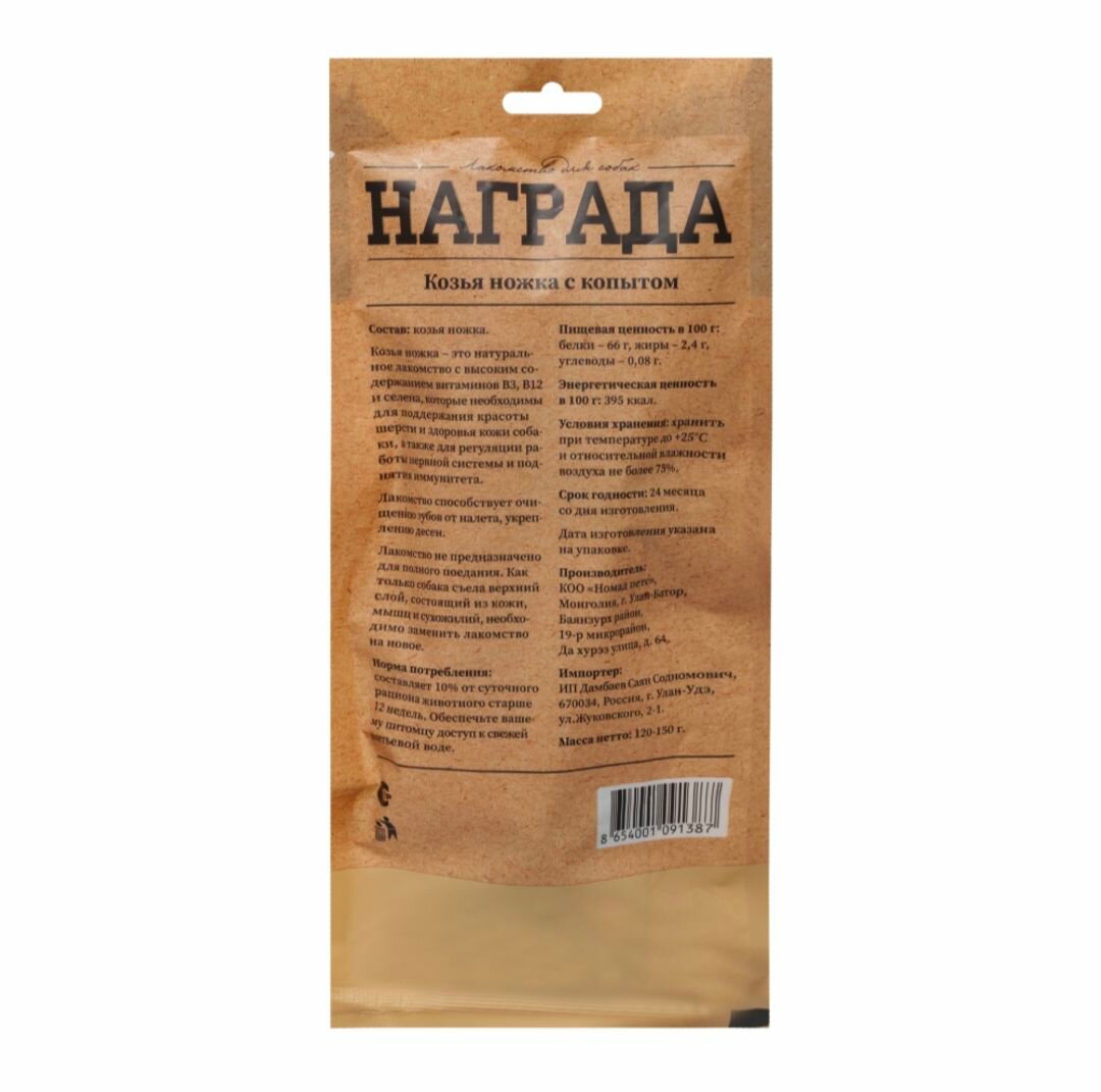 Награда Лакомство козья ножка для собак,150 гр. информация: