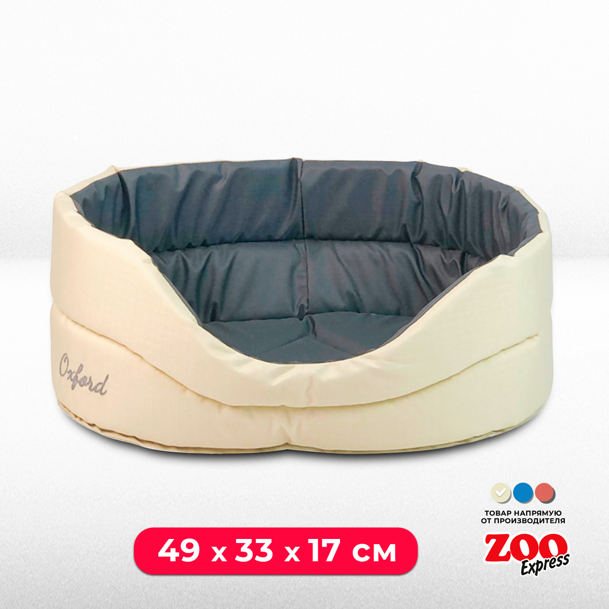 Отзывы на Лежанка овальная для собак и кошек ZOOexpress Oxford №3, 49х33х17 см, бежевый/серый