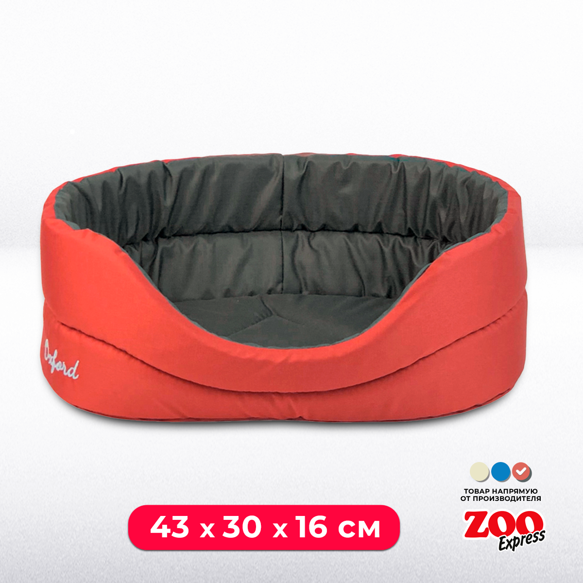 Лежанка овальная для собак и кошек ZOOexpress Oxford №2, 43х30х16 см, красный/серый информация: