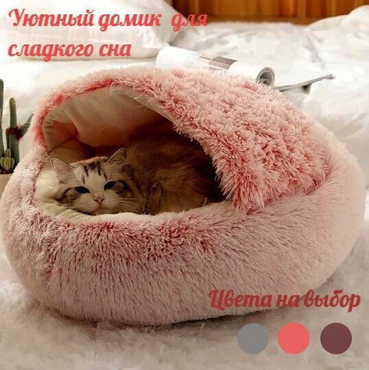 Отзывы на Закрытая лежанка для кошек и собак до 10кг, 60 см, Эко мех, кораллово-розовая.