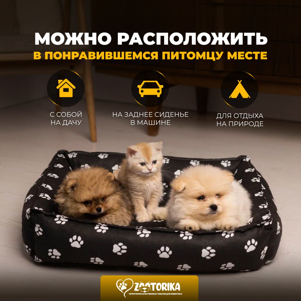 10 цен на Лежанка для кошек и собак SunBed прямоугольная "Лапки", черная, 55х45 / Лежак для животных мелких и средних пород
