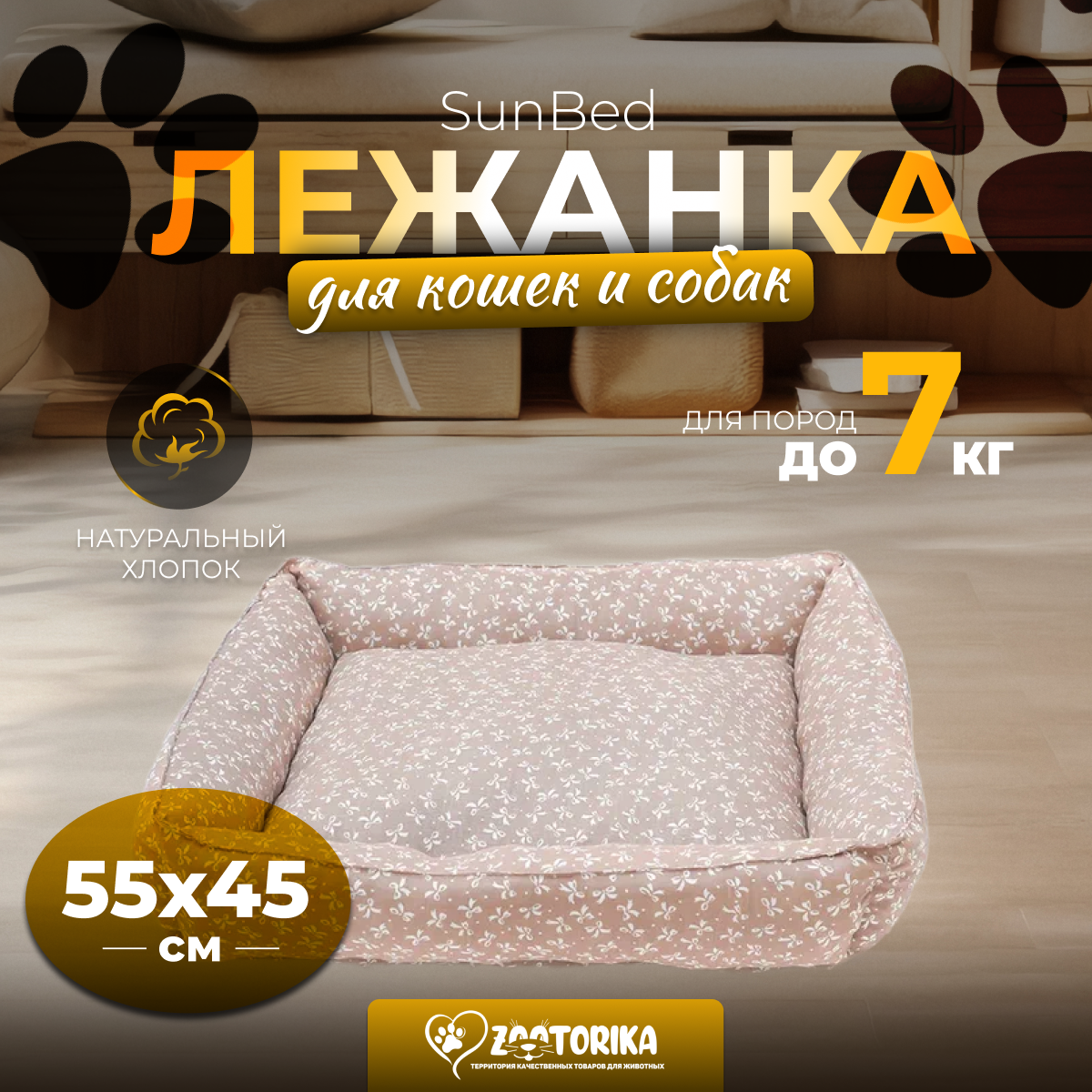 Отзывы на Лежанка для кошек и собак SunBed прямоугольная "Бантики", коричневая, 55х45 / Лежак для животных мелких и средних пород
