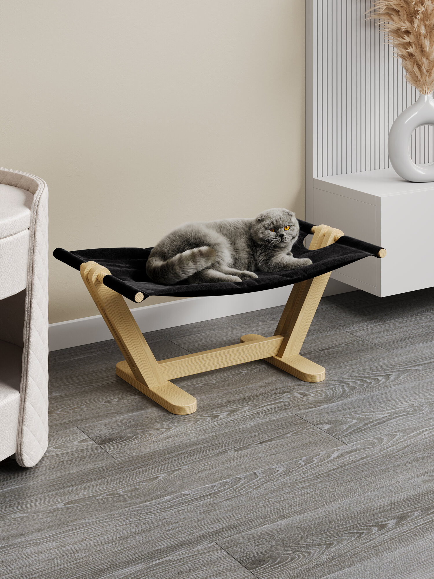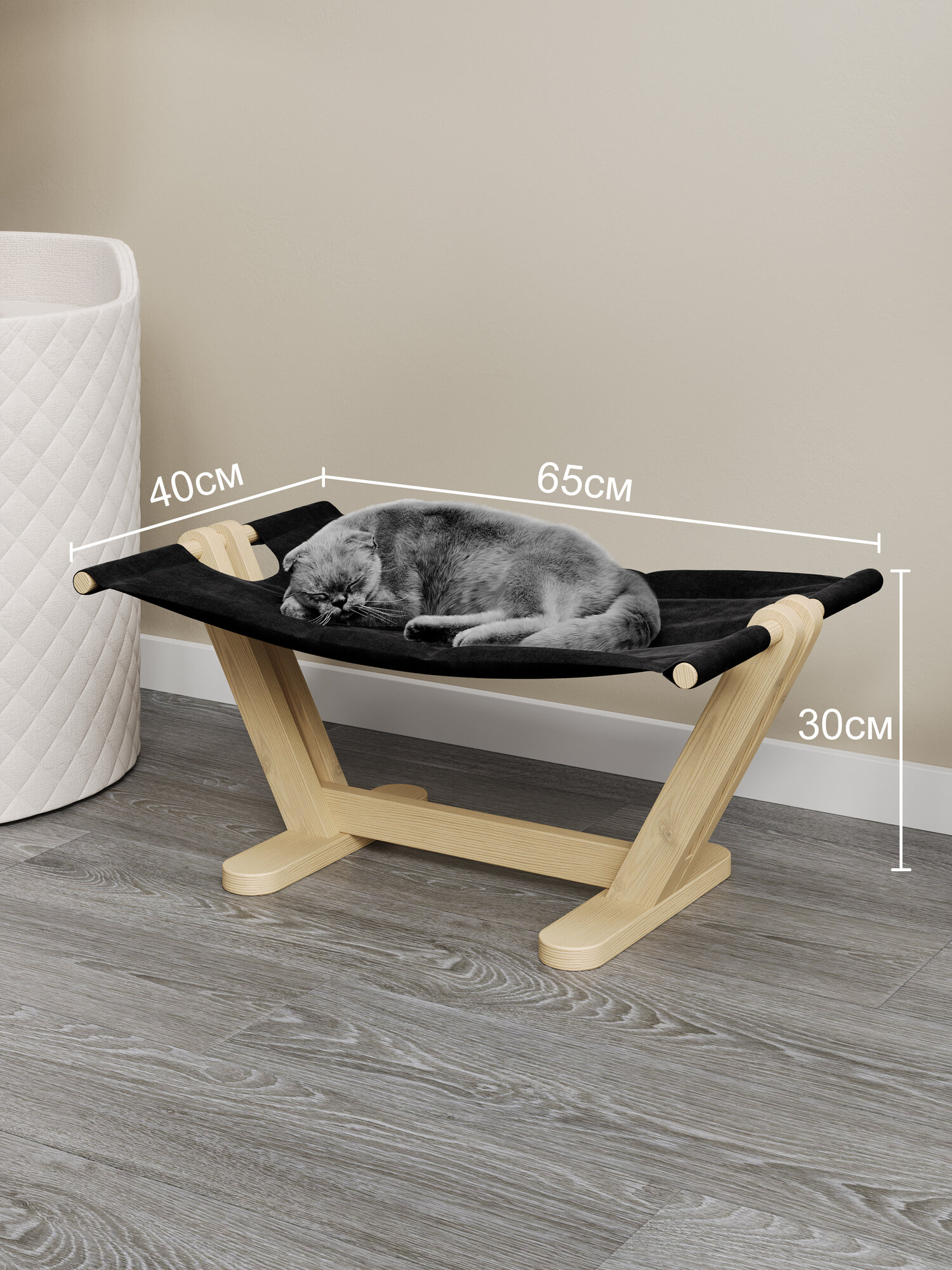 Гамак для котов и собак "Черный", прямоугольный, размер 30х40х65, материал дерево и ткань информация:
