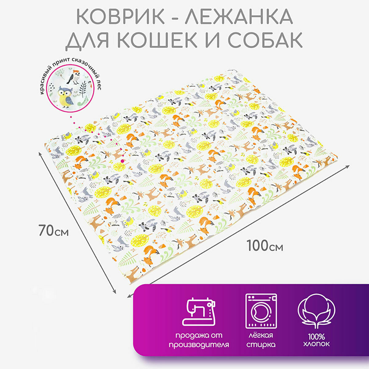 Коврик-подстилка для кошек и собак ZOOTORIKA прямоугольная стёганая "Сказочный лес", белая, 67х47 / Лежанка, Лежак для животных 569 ₽