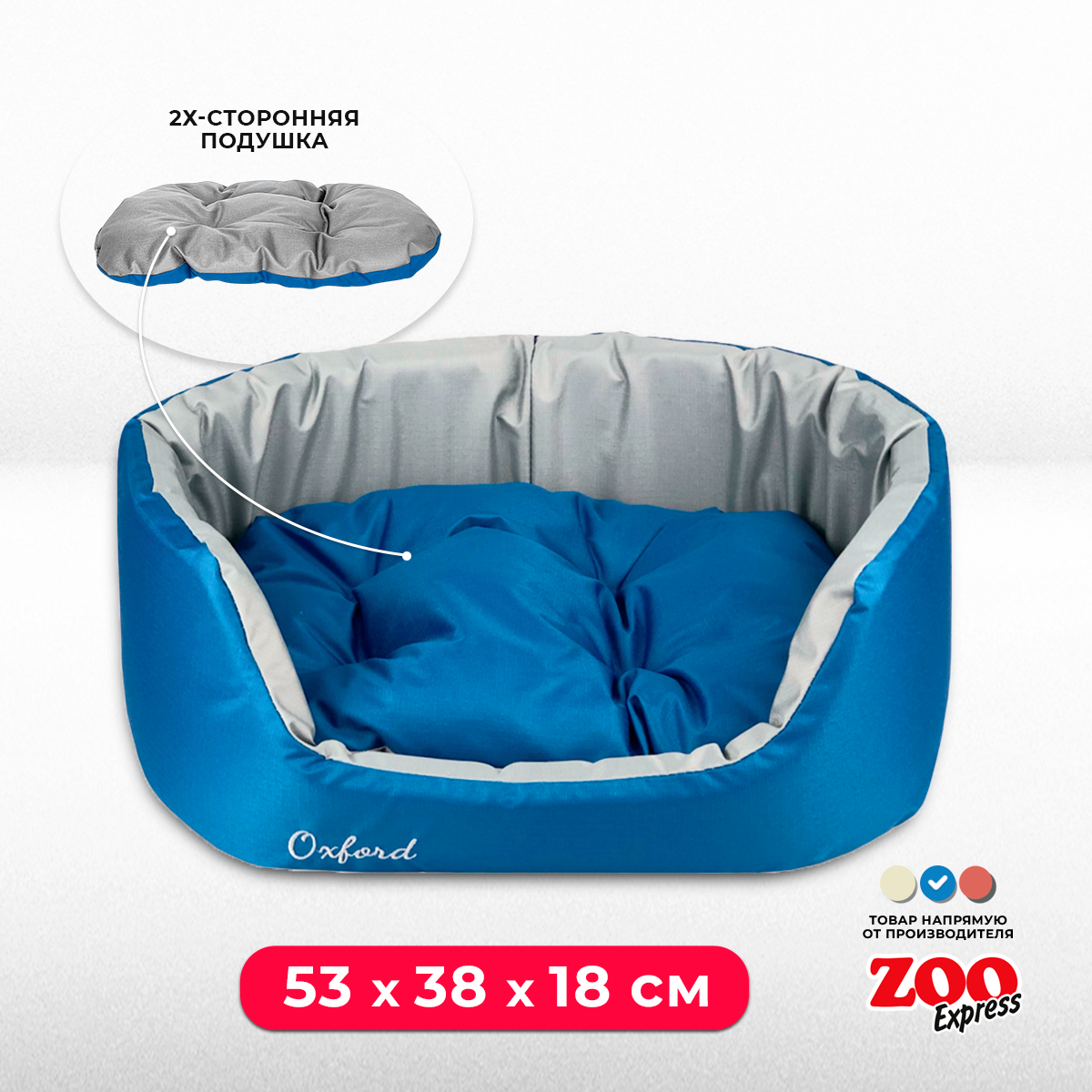 Лежанка для собак и кошек Zooexpress Oxford №4 со съемной подушкой, 53х38х18 см, синий/серый информация: