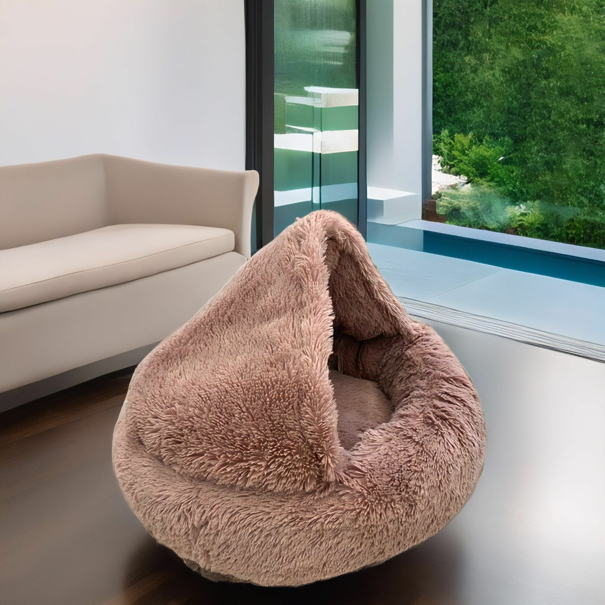 Лежанка закрытая меховая, домик для кошек, собак мелких и средних пород, М 50 см, цвет: кофейный градиент