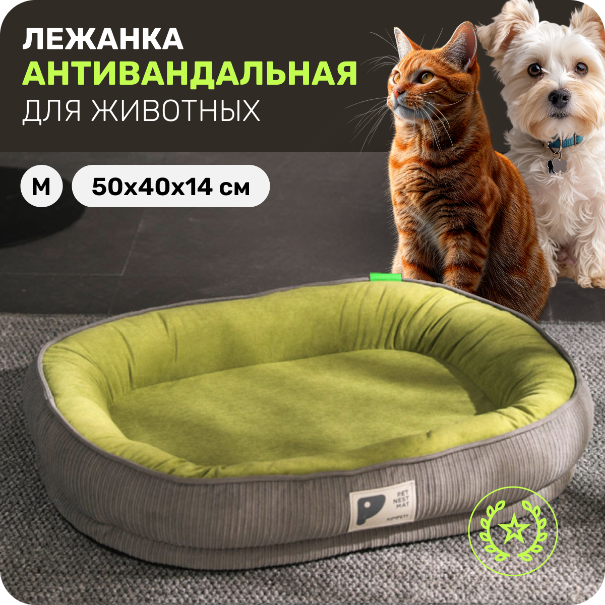 Отзывы на Лежанка для животных, собак и кошек, со съемным чехлом, Серо-зеленая, М (50х40х14 см)