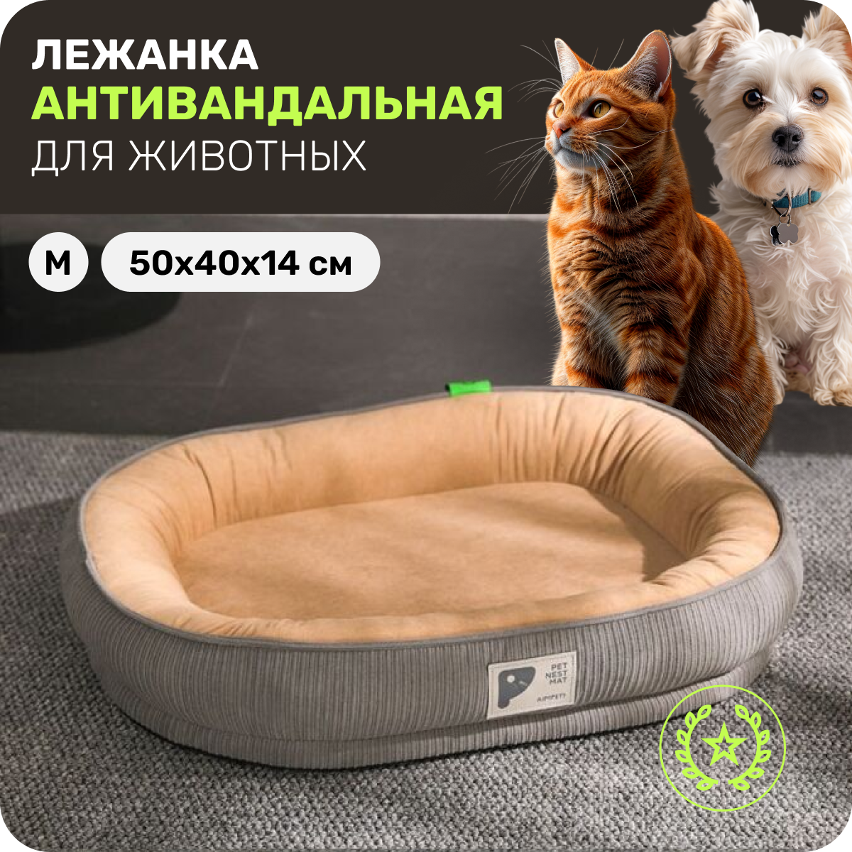 Лежанка для животных, собак и кошек, со съемным чехлом, Серо-бежевая, М (50х40х14 см) информация: