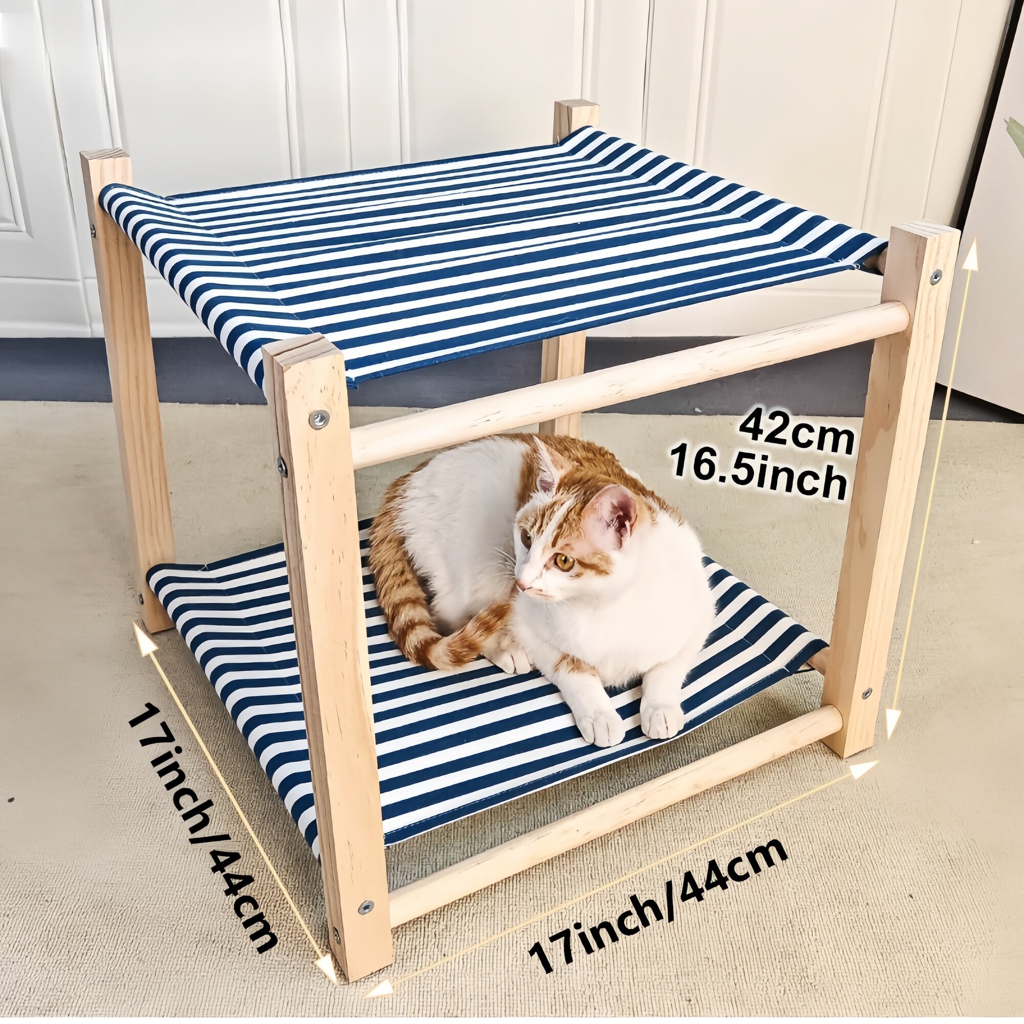 Отзывы на 2-этажный крытый кошачий гамак, сосновая кошачья кровать на возвышении, подходит для всех сезонов (синий)