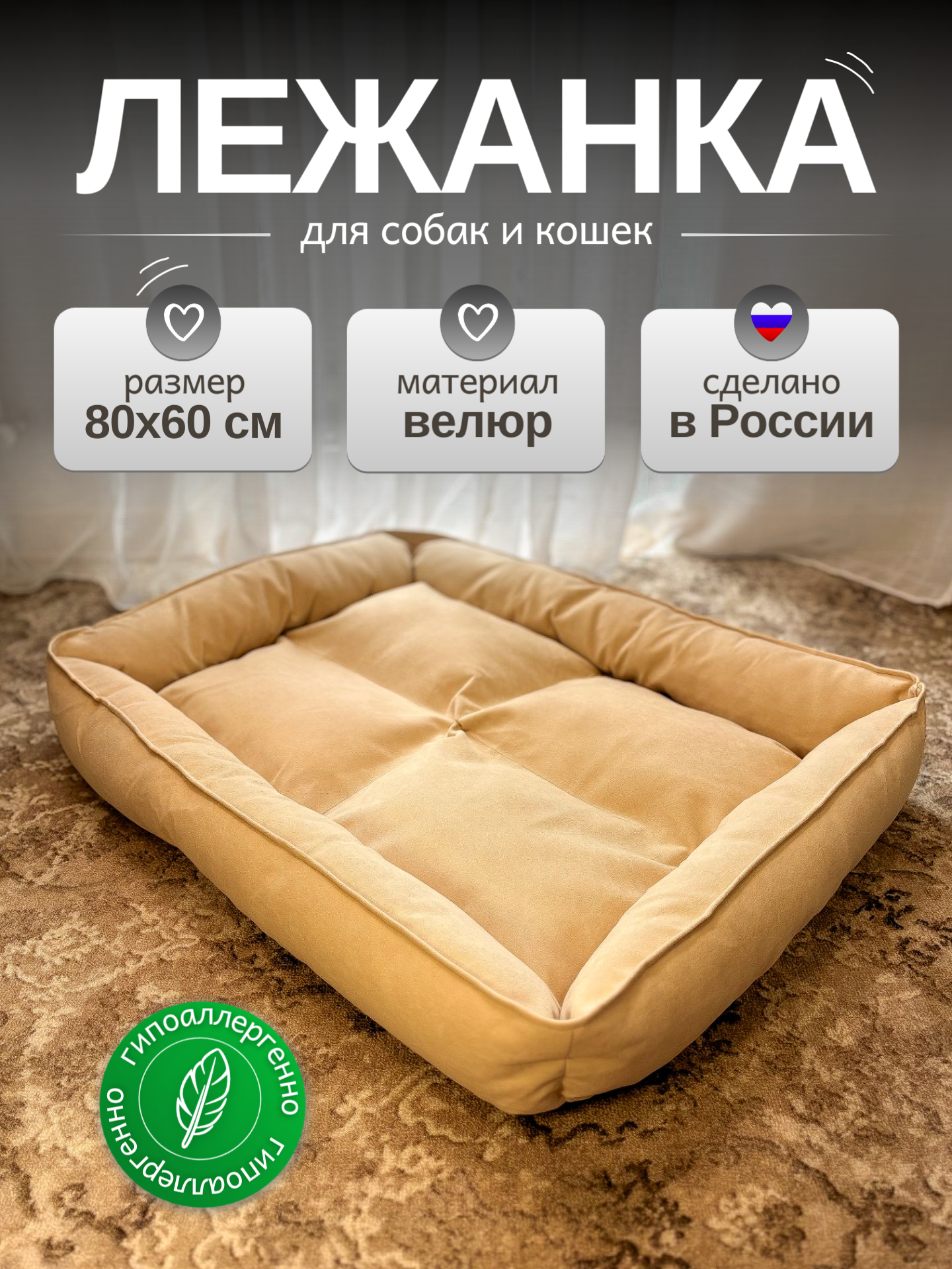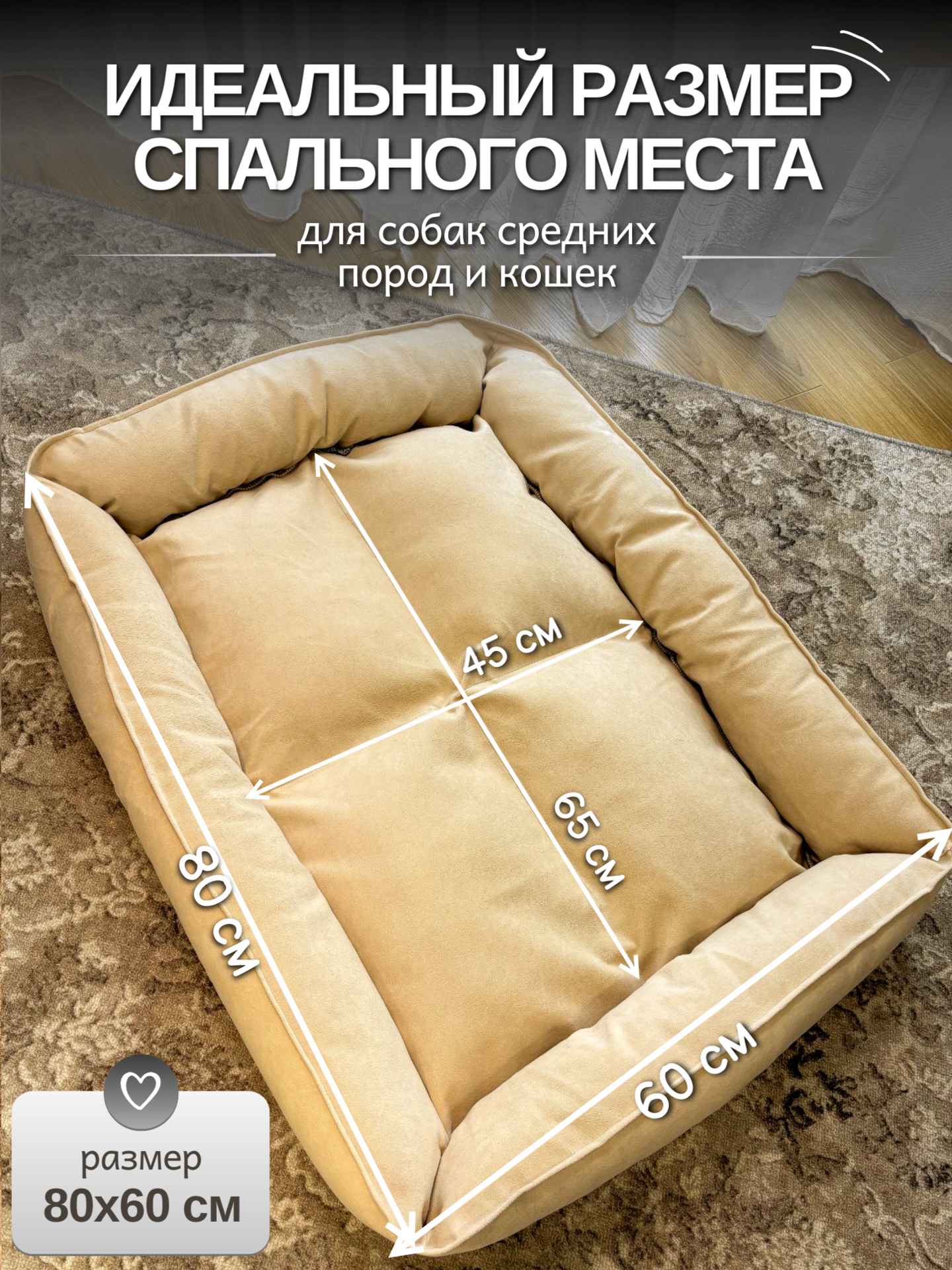 Лежанка для кошек и собак средних и крупных пород, лежак для животных с бортиками, 80х60 см, персиковая информация: