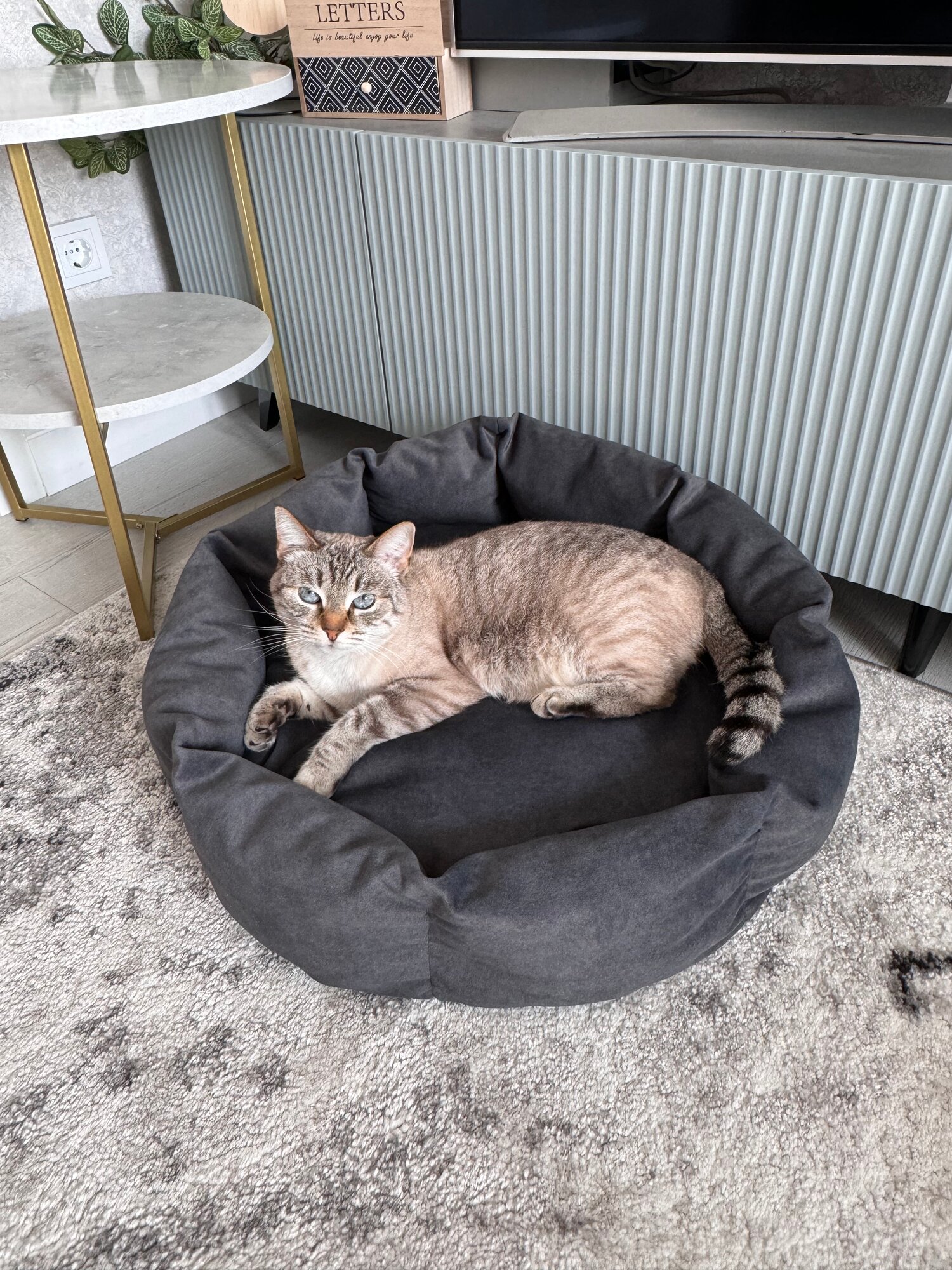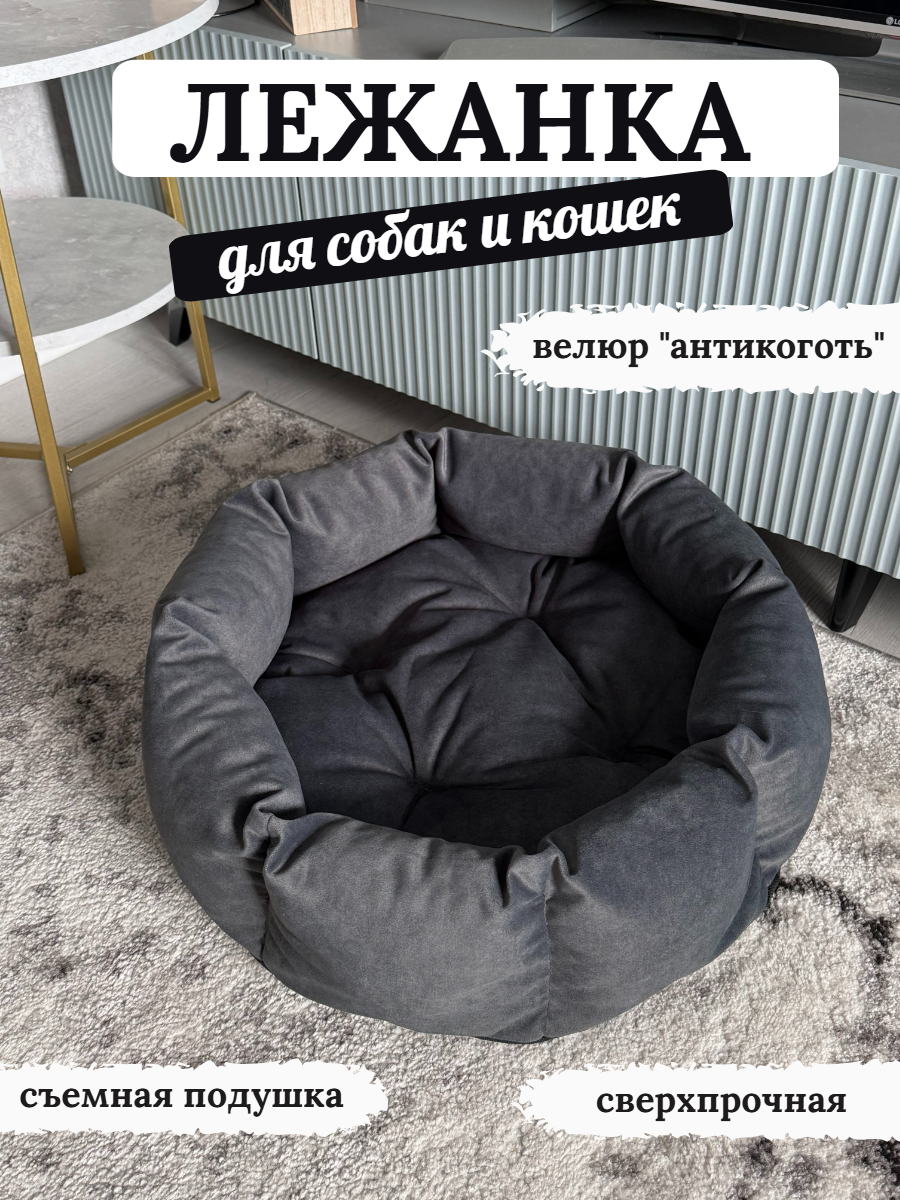 Лежанка для собак и кошек, размер 60 на 60, цвет океан, антивандальный велюр, мебельная ткань 1 799 ₽