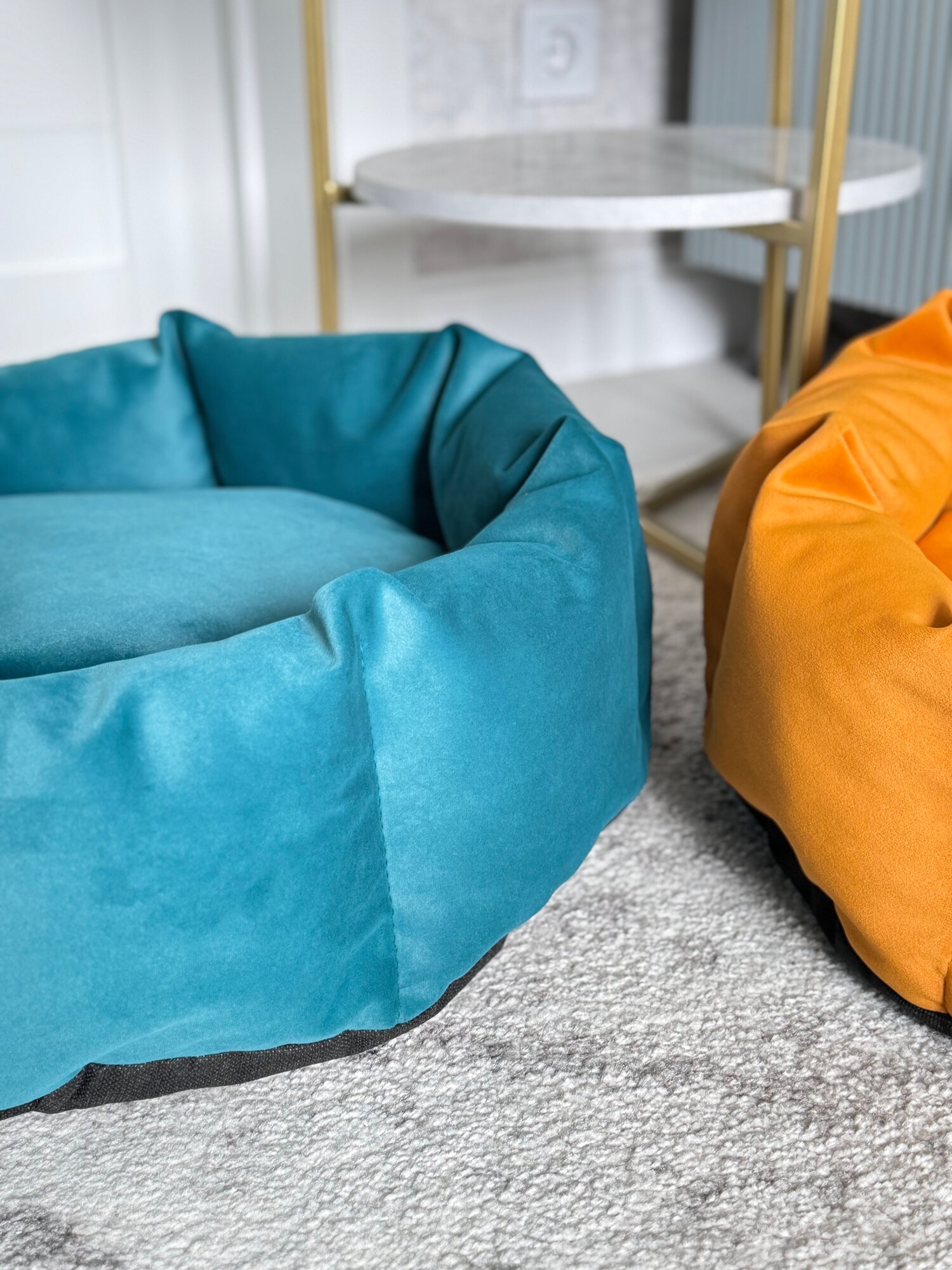 Лежанка для собак и кошек, размер 60 на 60, цвет океан, антивандальный велюр, мебельная ткань информация: