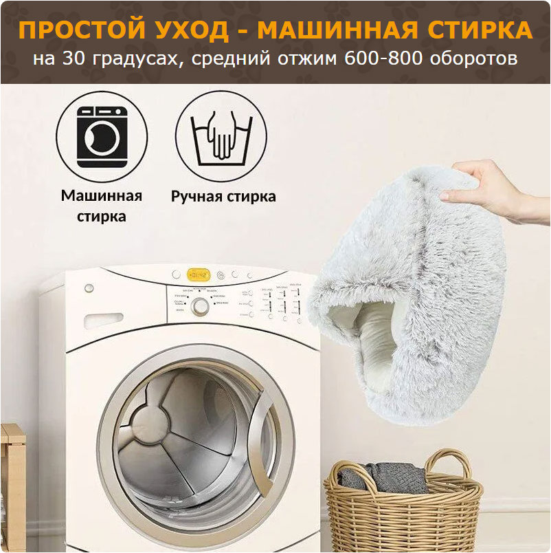 Закрытая лежанка домик для кошек M 50 см (внутри - МЕХ, цвет капучино) / лежанка сплюшка для сфинкса 2 950 ₽