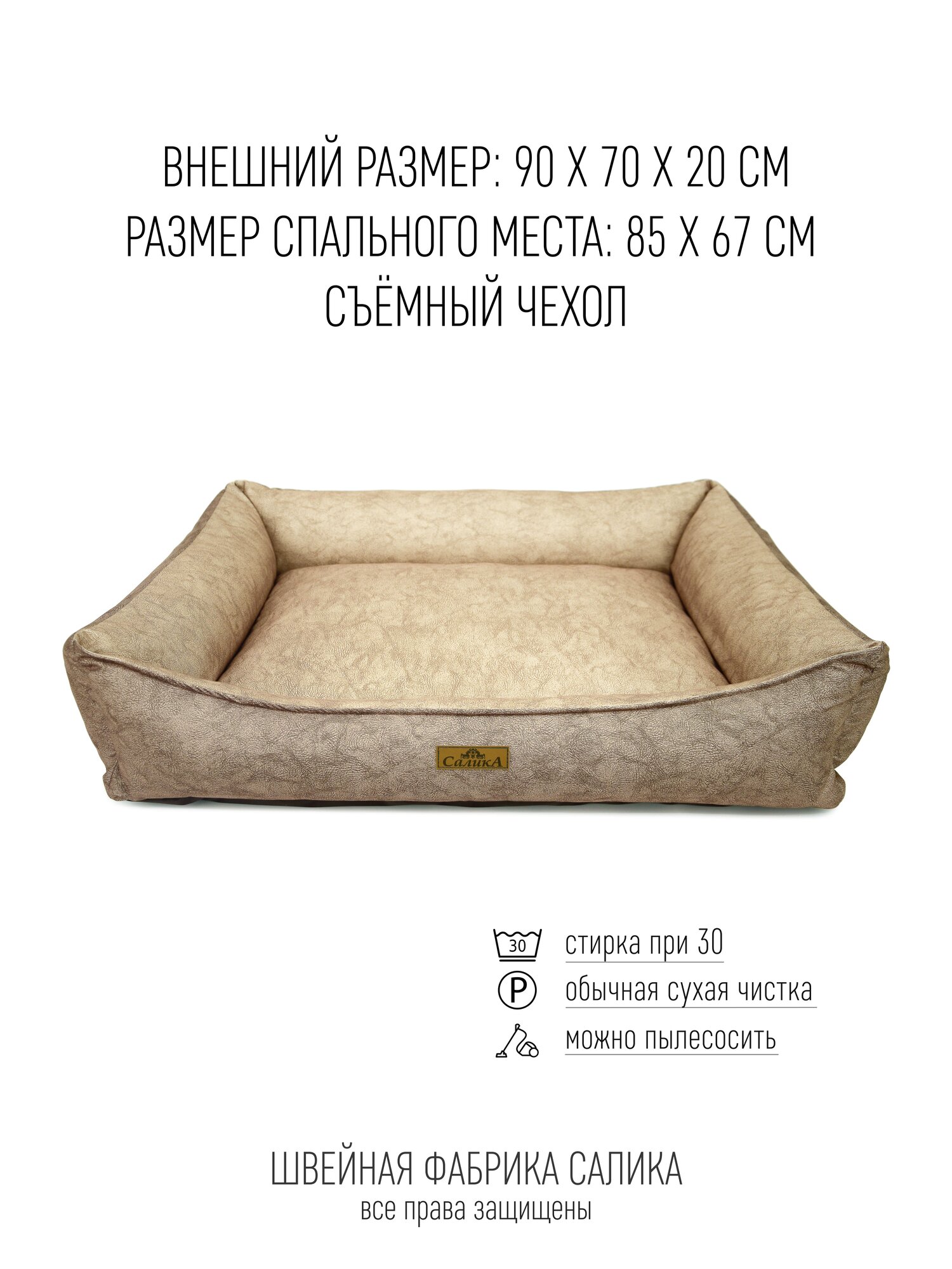 Лежанка для собаки 90х70х20 см. Съёмный чехол удобно стирать САЛИКА