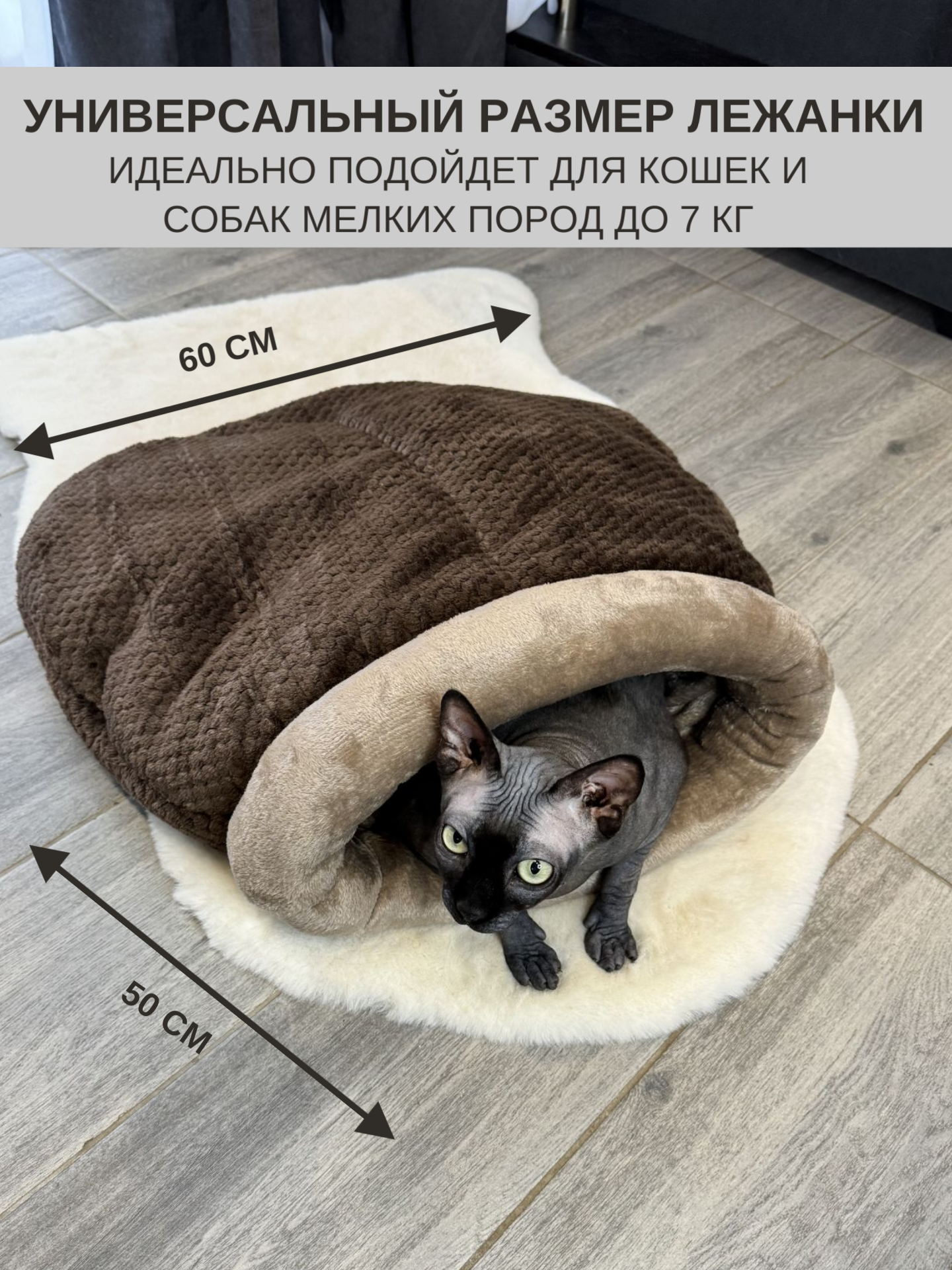 Лежанка для кошек и собак Emmy Stil "Варежка", велсофт, коричневая, 60х50 см информация: