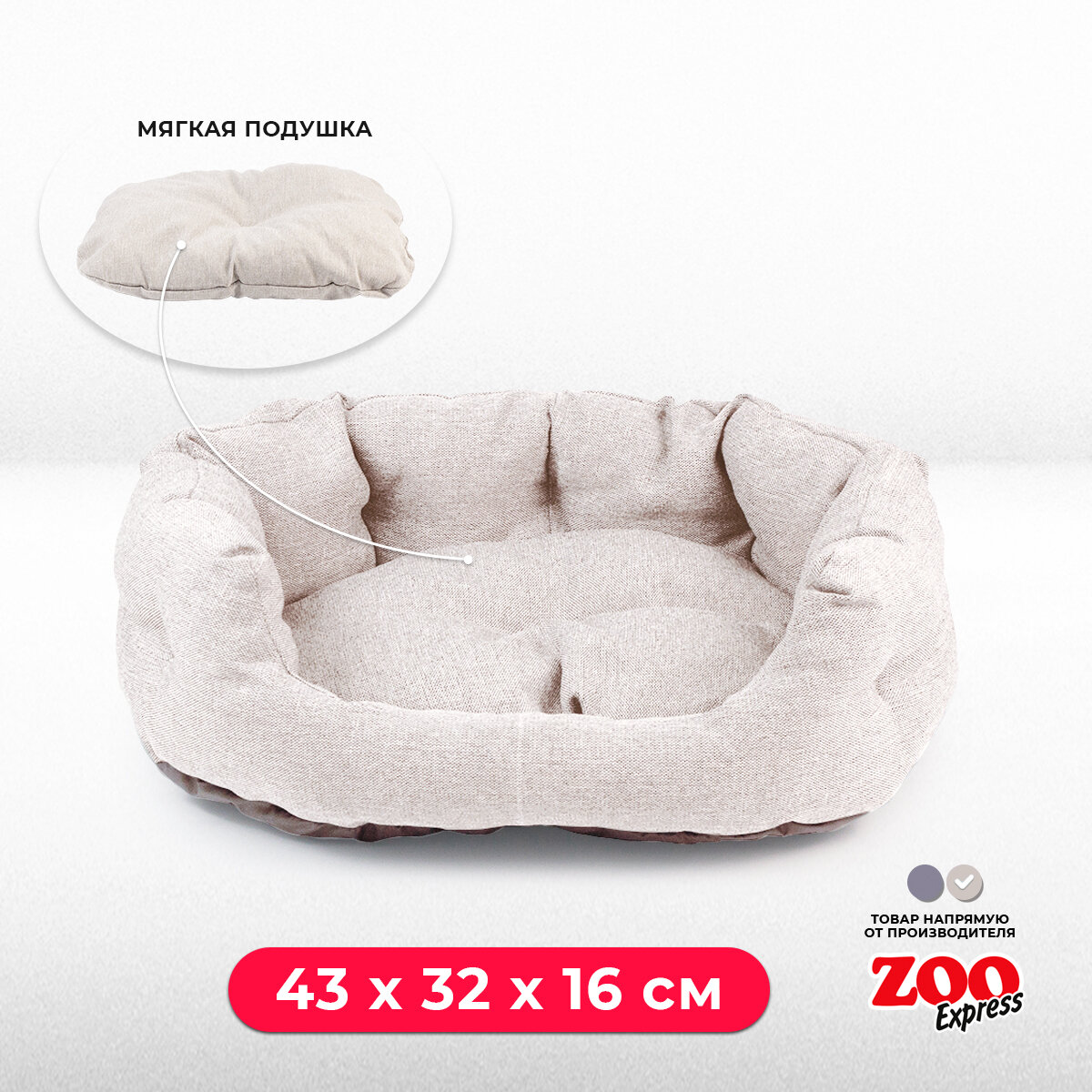10 цен на ZOOexpress Лежанка-пухлик со стяжкой для собак и кошек NORD №1, 43х32х16 см, бежевый