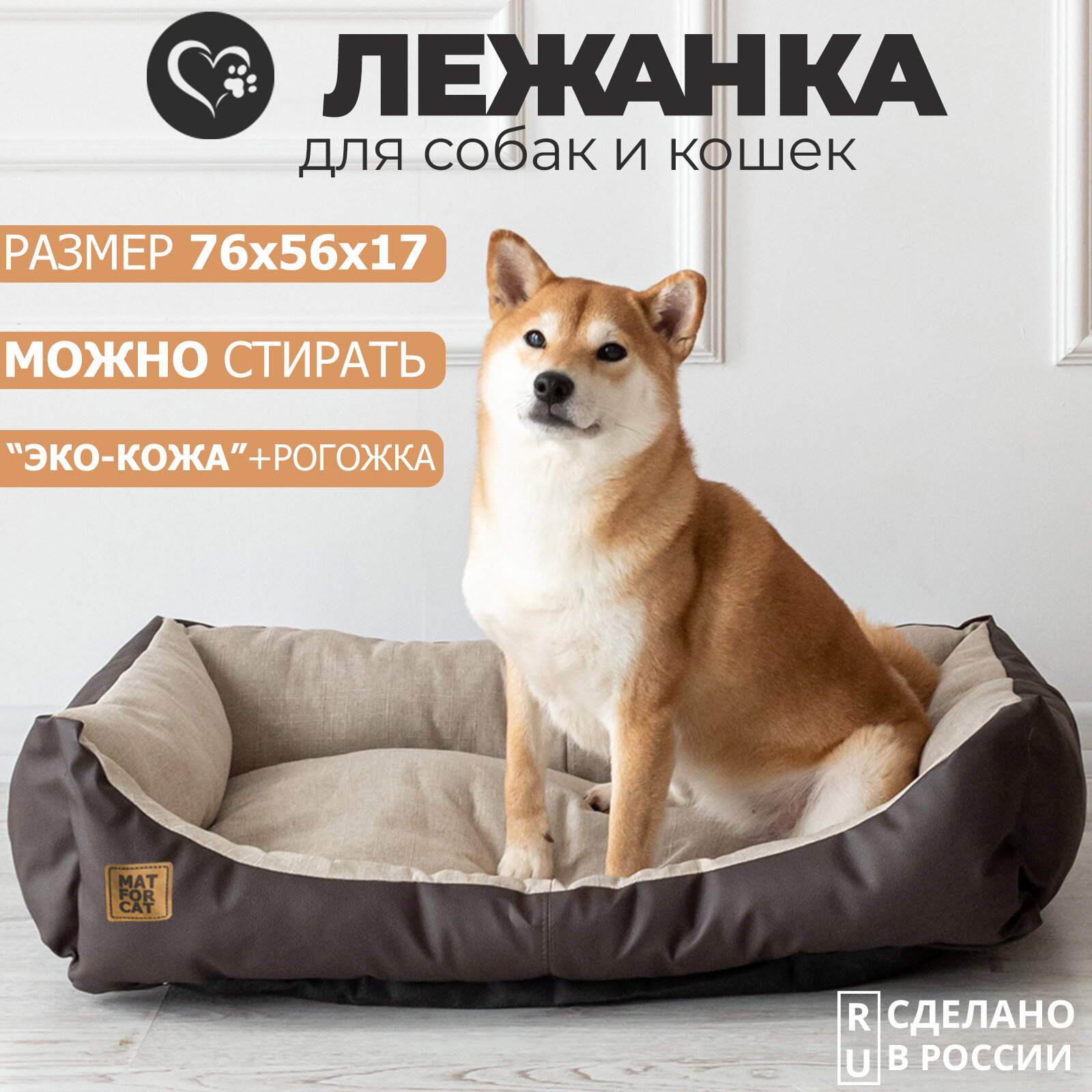Отзывы на Лежак для собак и кошек "Экокожа+Рогожка" L 76*56*17см Matforcat Цвет: Бежевый