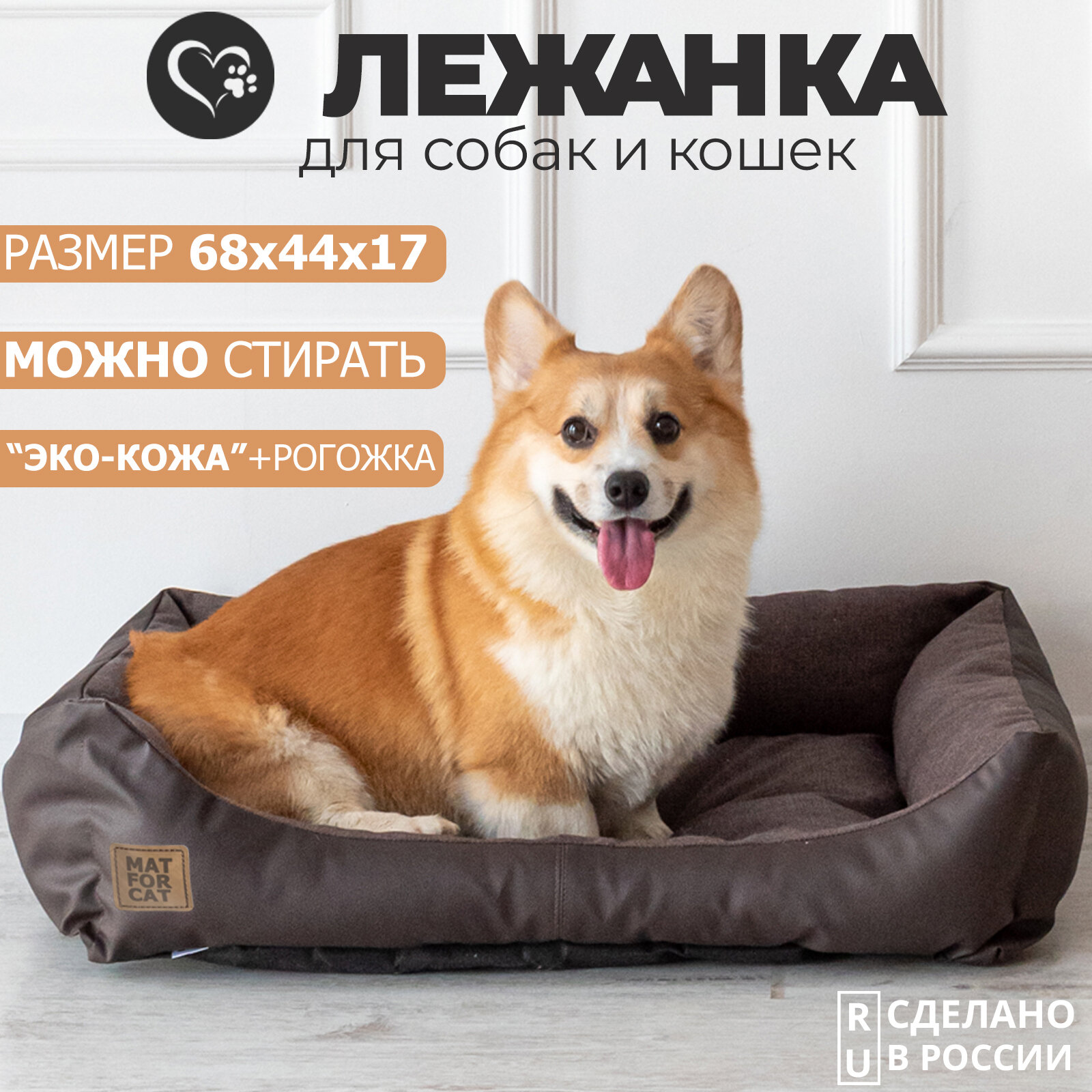 Отзывы на Лежак для собак и кошек "Экокожа+Рогожка" M 68*44*17см Matforcat Цвет: Шоколад