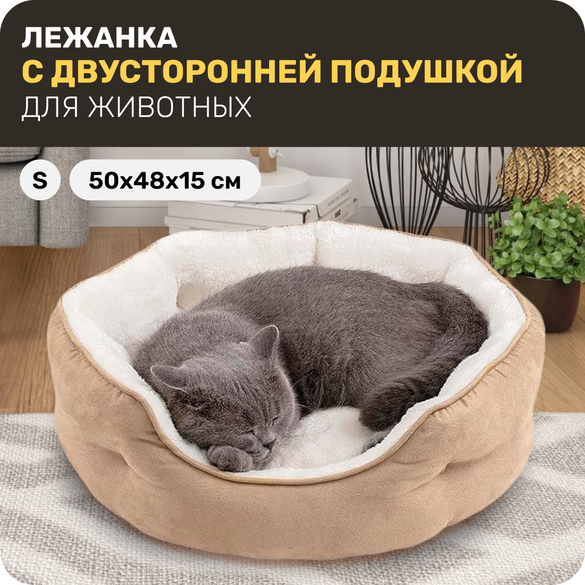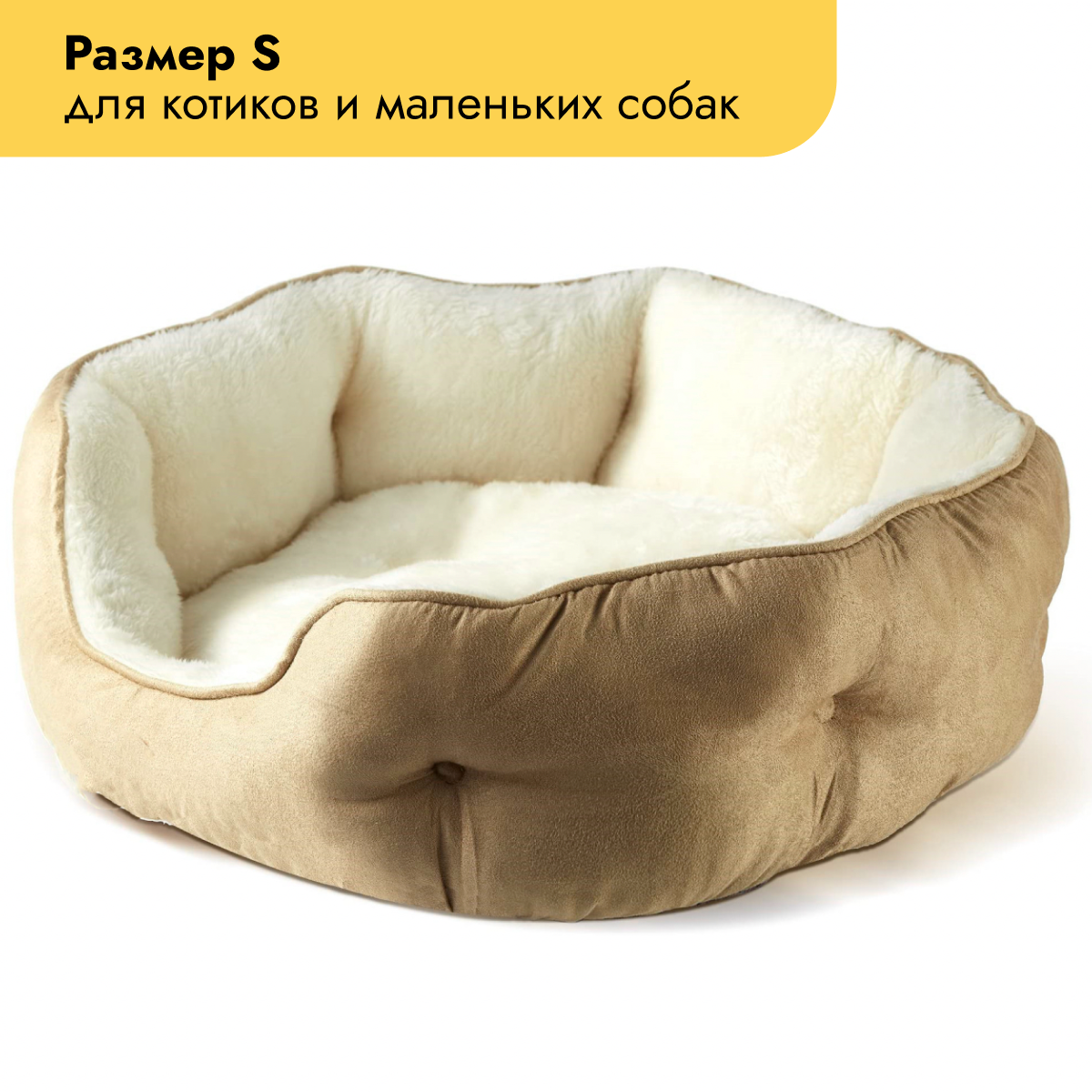 Лежанка для животных, кошек и собак, Мягкая, Бежевая, S (50x48x15 см) информация: