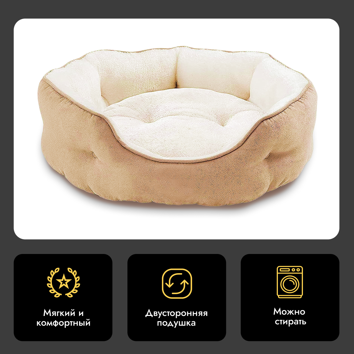 Отзывы на Лежанка для животных, кошек и собак, Мягкая, Бежевая, S (50x48x15 см)