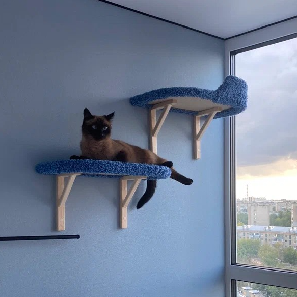 Отзывы на Лежанка для кошек, Моя Котя, настенная, с бортиком правосторонняя, ковролин голубой, 50х30 см