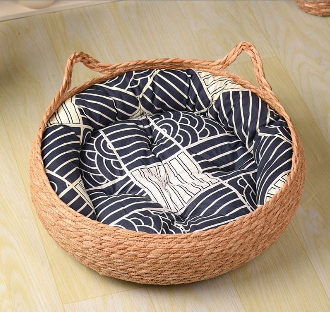 10 цен на Плетеная из рогоза лежанка для домашних животных ручной работы,Соломенная кровать для кошек и собак,синий 48*48*15см