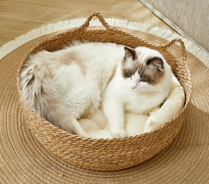 Отзывы на Плетеная из рогоза лежанка для домашних животных ручной работы,Соломенная кровать для кошек и собак,синий 48*48*15см
