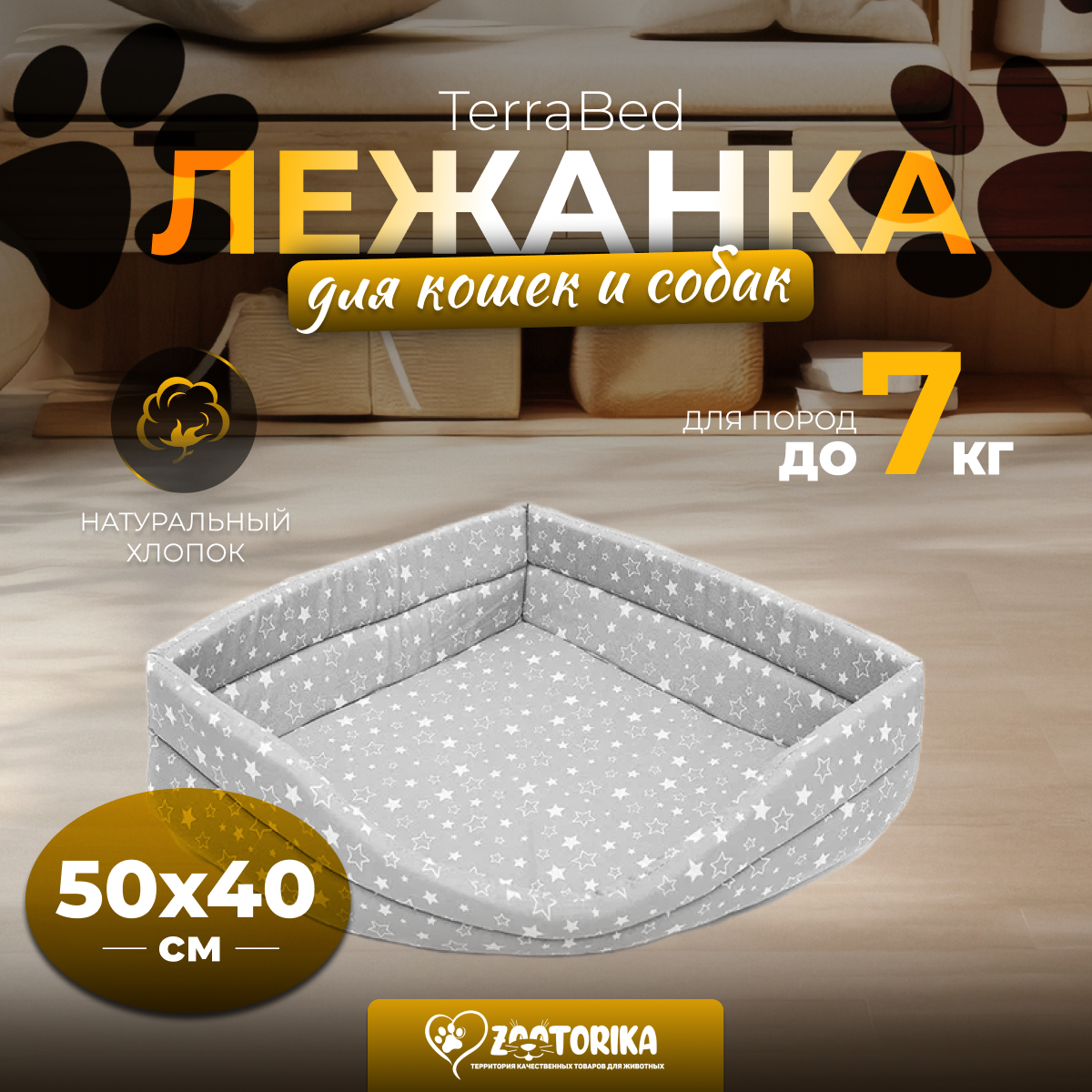 Лежанка для кошек и собак TerraBed угловая "Звездопад", серая, 70х45 / Лежак для животных мелких пород информация: