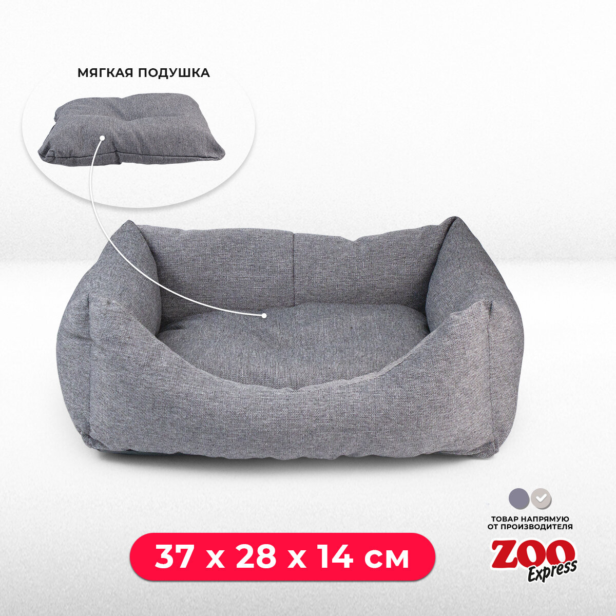 ZOOexpress Лежанка пухлик для собак и кошек NORD №1, 37х28х14 см, серый информация: