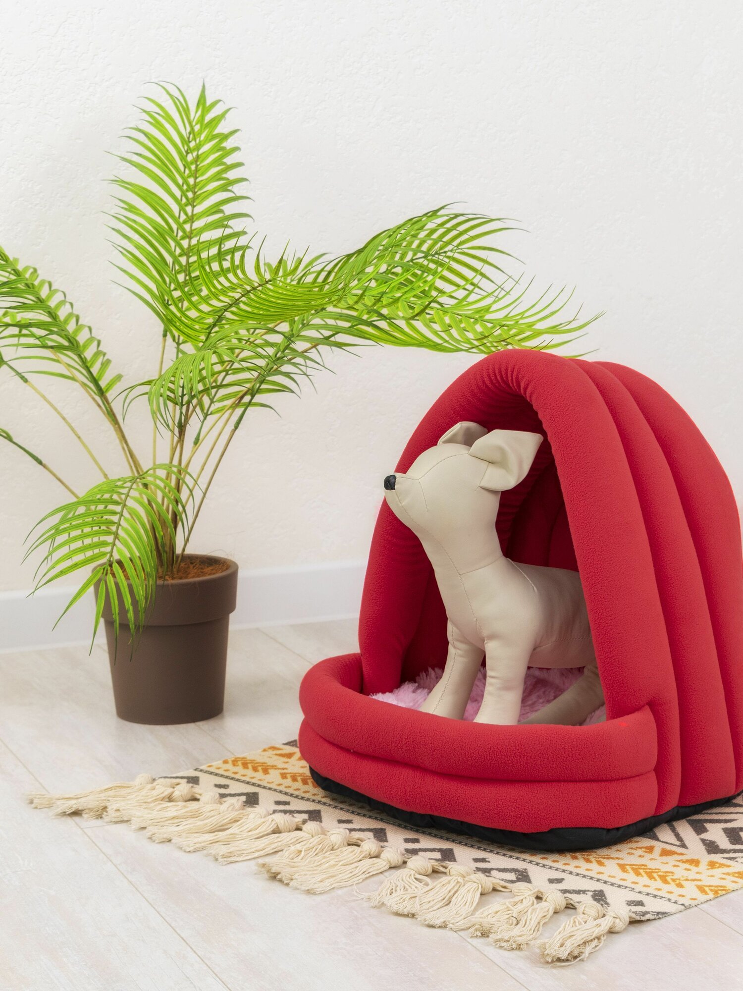 10 цен на Домик для кошки красный мягкий ZooMoDa, лежанка розовая, лежак с игрушкой