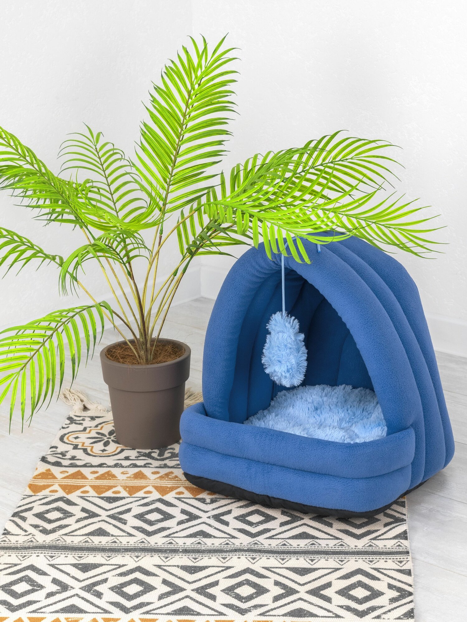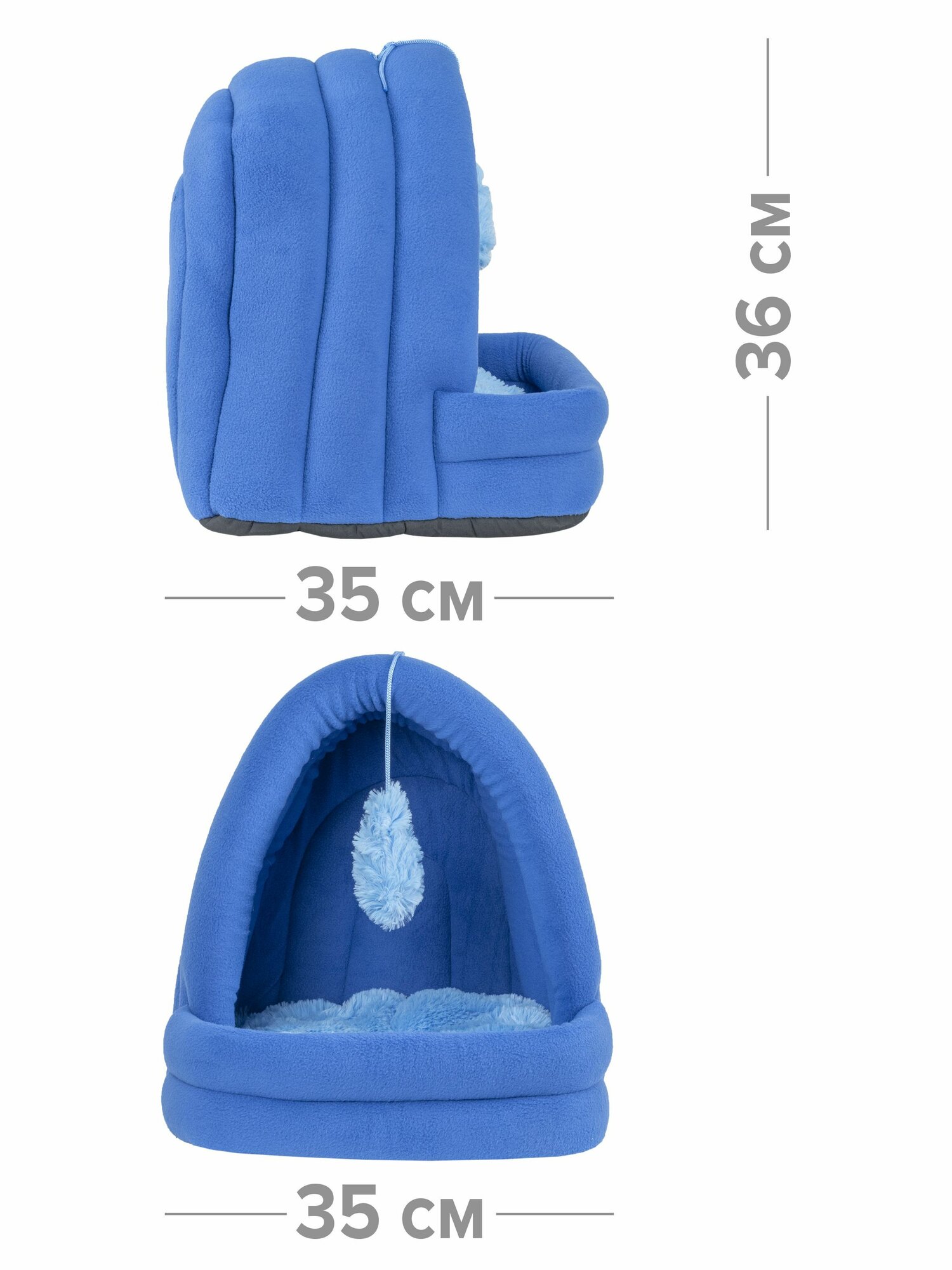 Отзывы на Домик для кошки мягкий синий, лежанка с игрушкой ZooMoDa, мягкая подушечка, искусственный мех
