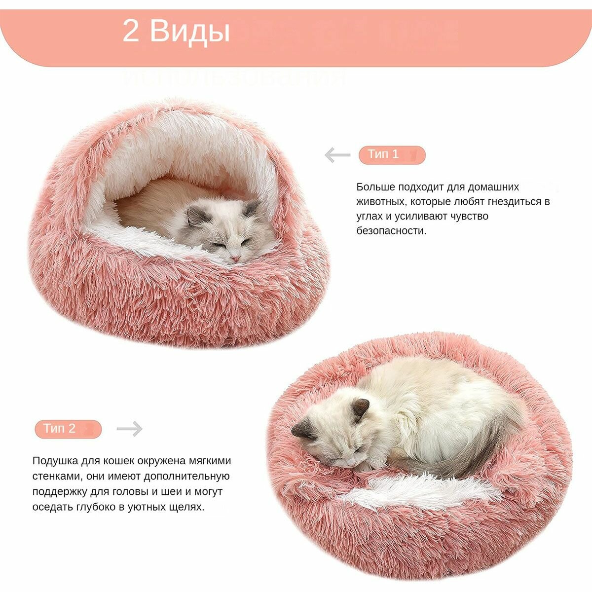Лежанка для кошек и собак, противоклещевыми пушистым из искусственного меха, вмещает до 10 кг информация: