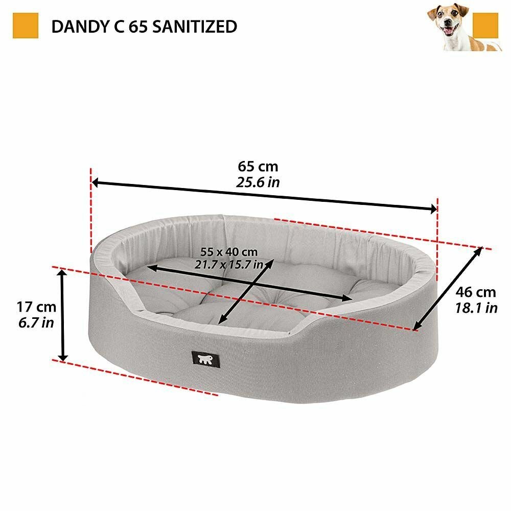 Софа-лежанка для собак и кошек с антибактериальной обработкой Sanitized Ferplast DANDY 65, 65 x 46 x h 17 см, серая информация: