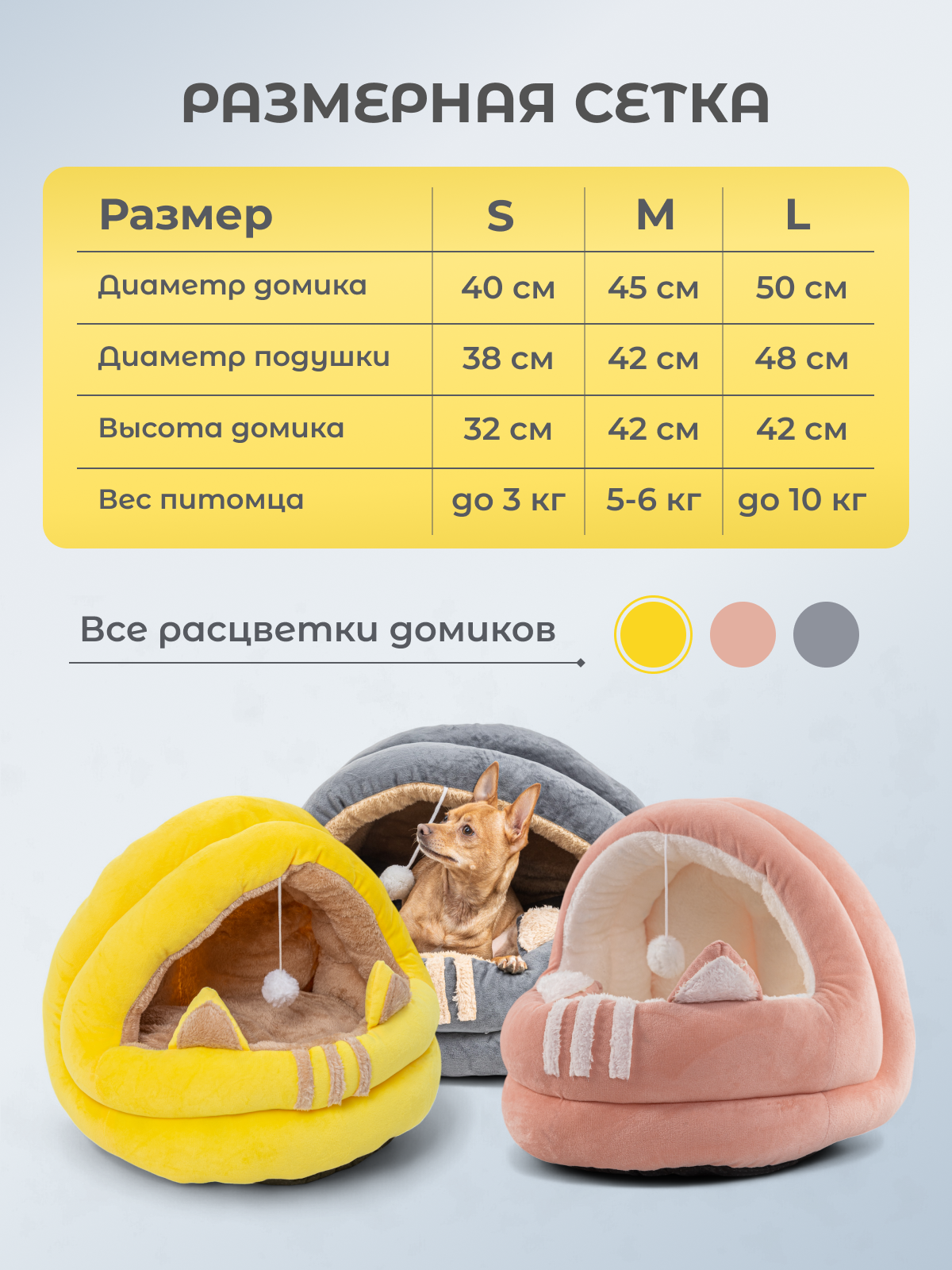 Отзывы на Домик для кошки с игрушкой, М 45х45х42 см, Лежанка для собак мелких пород, цвет желтый Family Pet