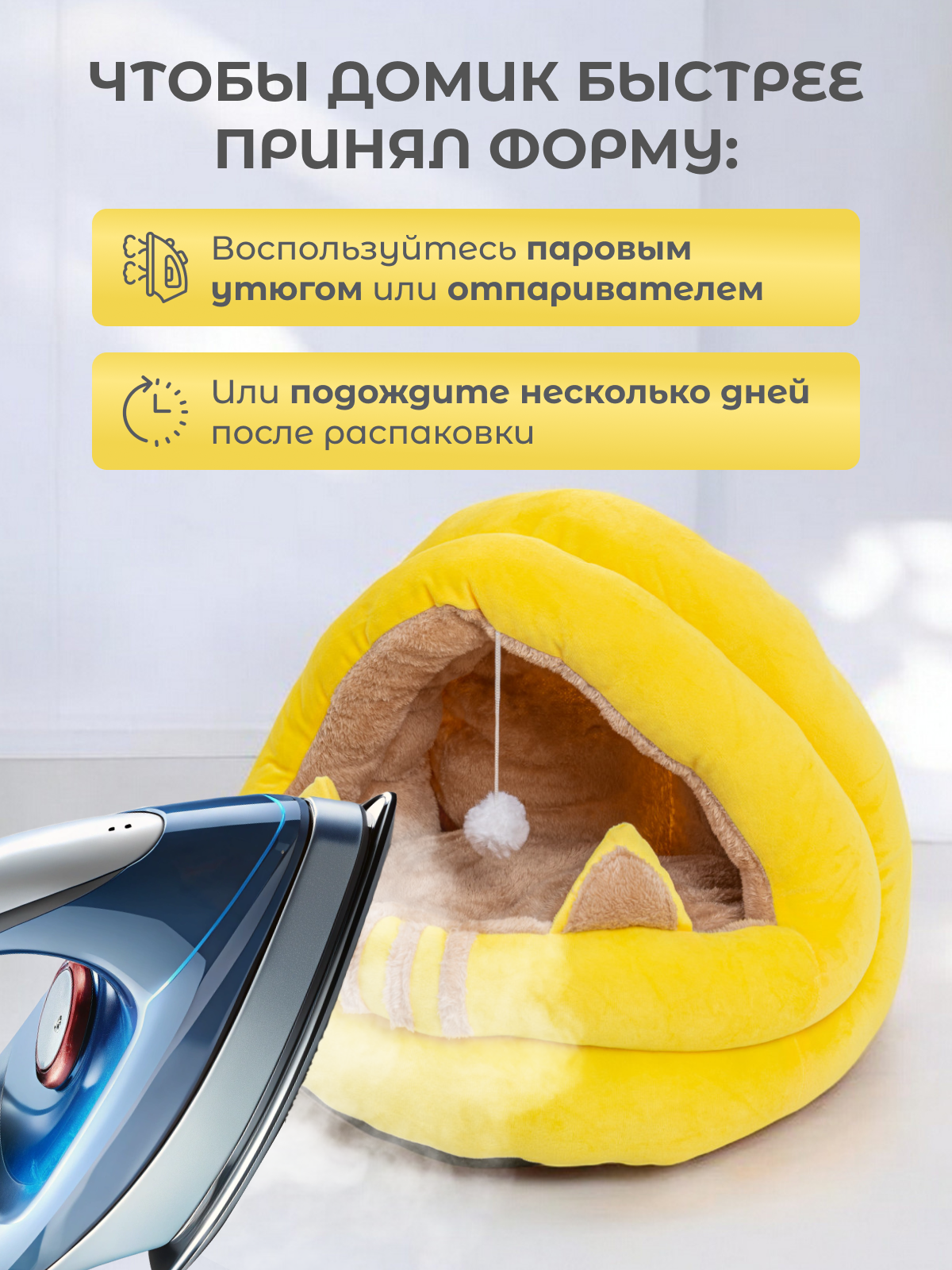 Домик для кошки с игрушкой, М 45х45х42 см, Лежанка для собак мелких пород, цвет желтый Family Pet информация: