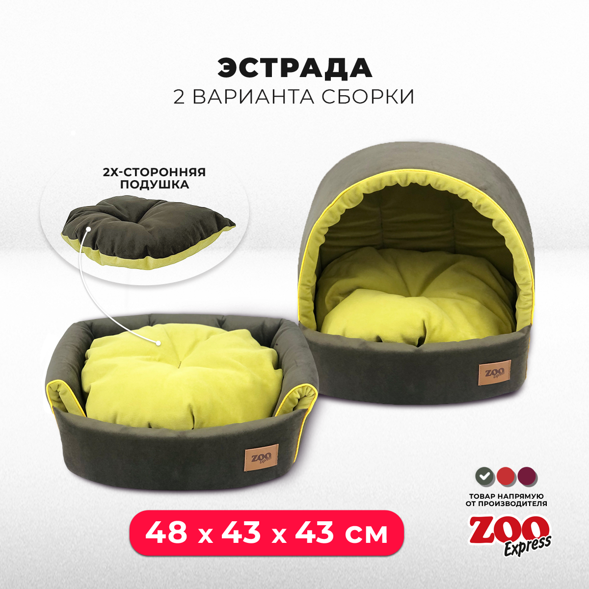 Дом лежанка для собак и кошек ZOOexpress эстрада-трансформер Ампир №3, 48х43х43 см, оливковый/зеленый информация: