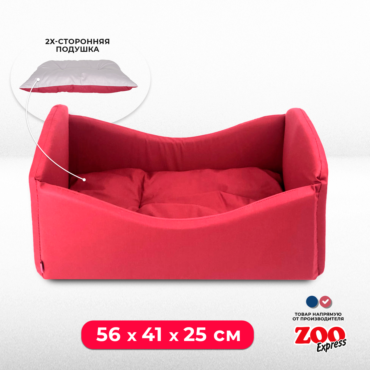 Лежанка кроватка для собак и кошек ZOOexpress №2, 56х41х25 см, бордовый информация: