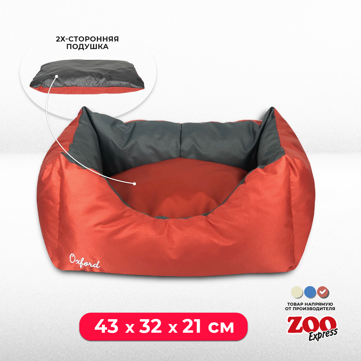 Лежанка пухлик для собак и кошек ZOOexpress Oxford №1, 43х32х21 см, красный/серый информация: