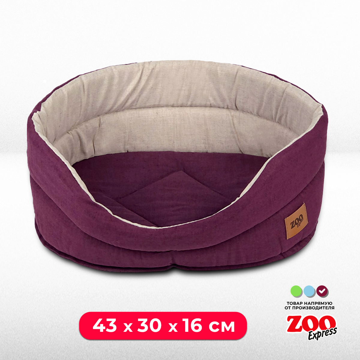 Лежанка для собак и кошек ZOOexpress "Овальный" Эколен №1, 40х27х16 см, баклажановый 1 191 ₽