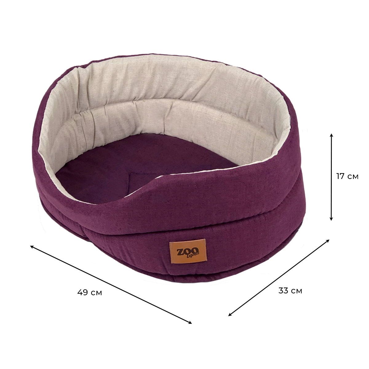 Лежак для собак и кошек ZOOexpress "Овальный" Эколен №3, 49х33х17 см, баклажановый информация:
