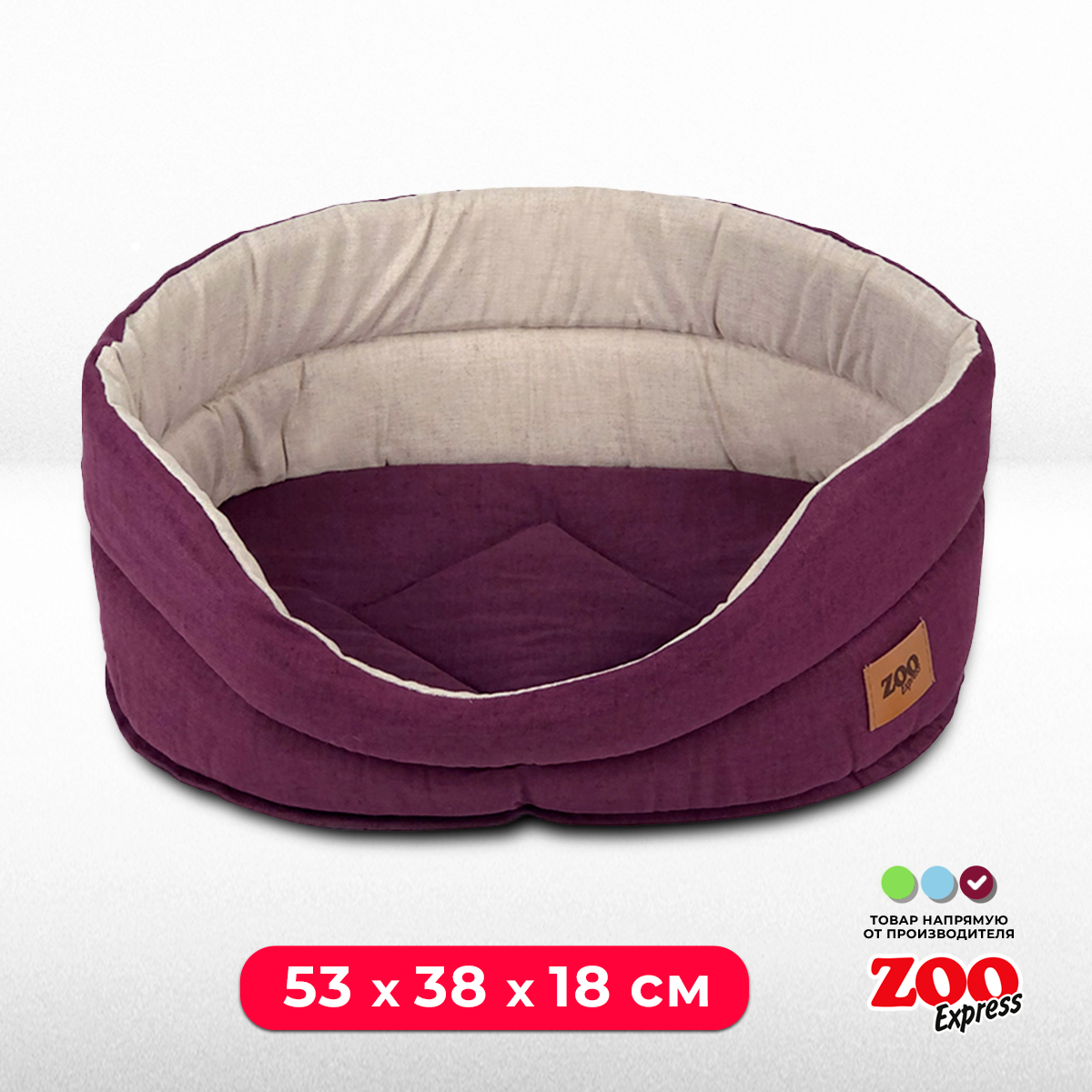 Лежак для собак и кошек ZOOexpress "Овальный" Эколен №3, 49х33х17 см, баклажановый 1 531 ₽