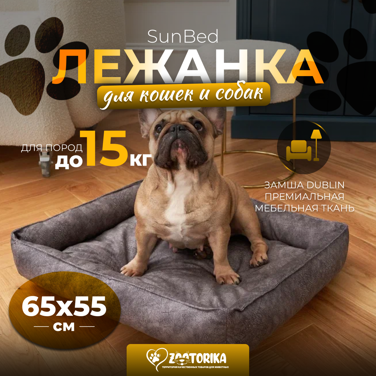 Отзывы на Лежанка для собак и кошек SunBed прямоугольная из замши, серый меланж, 65х55 / Лежак Премиум L для животных мелких и средних пород
