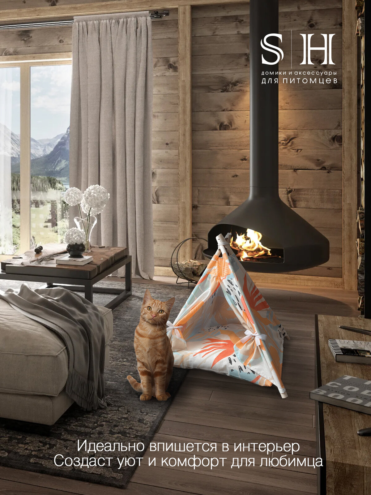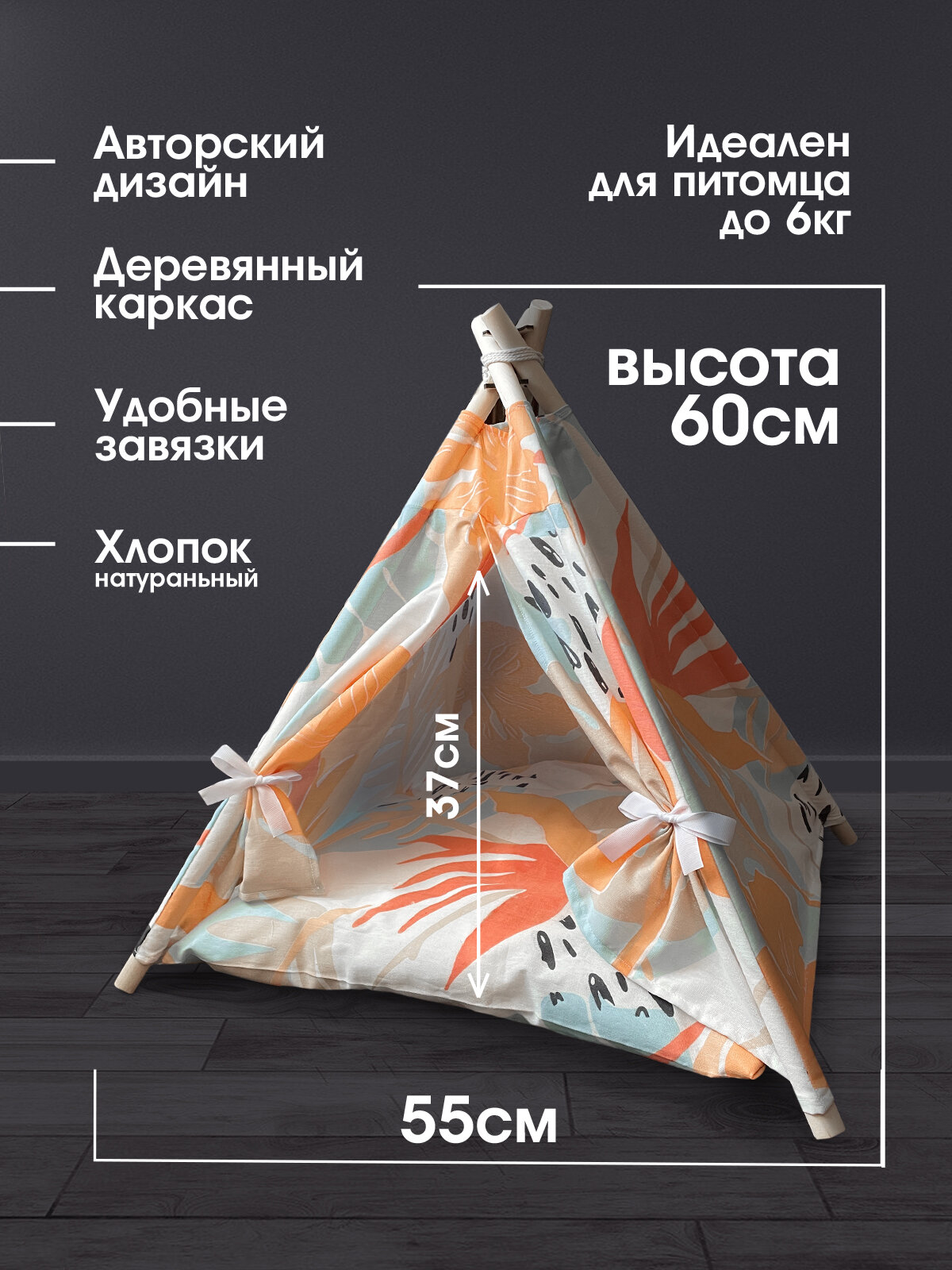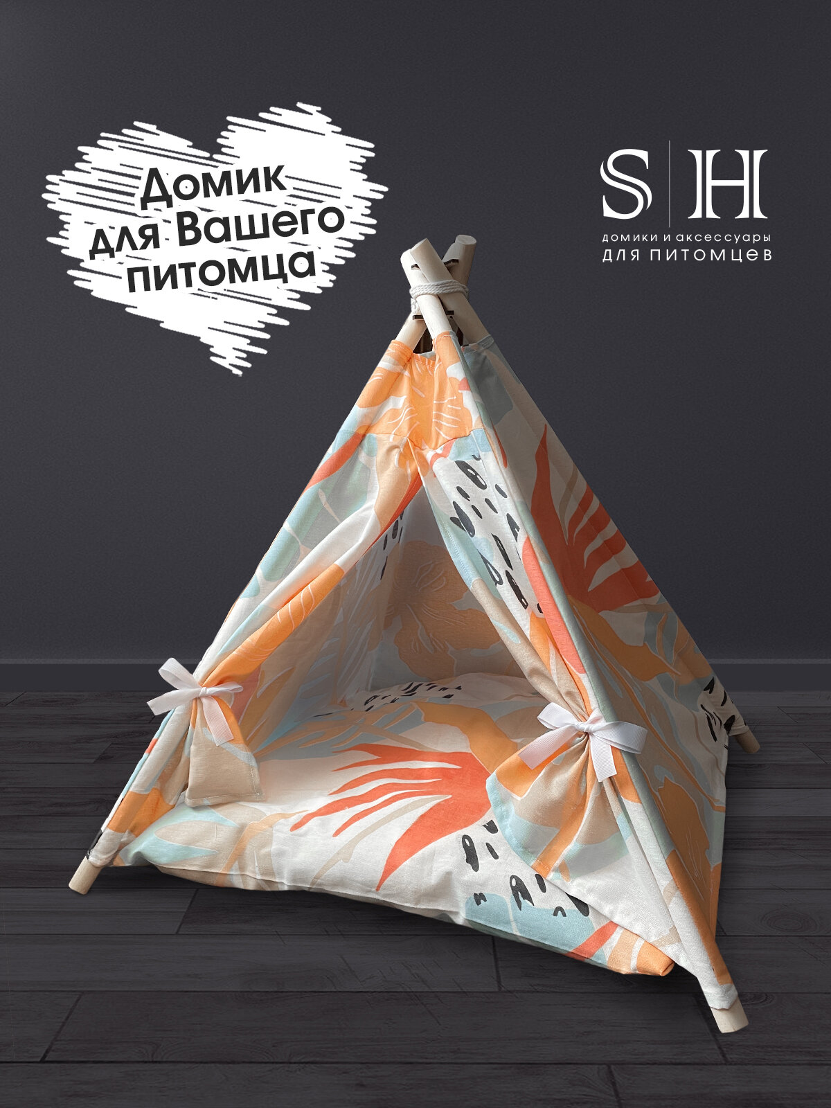 10 цен на Домик для животных. Вигвам-палатка для кошек и собак с лежанкой Оранжево-белый
