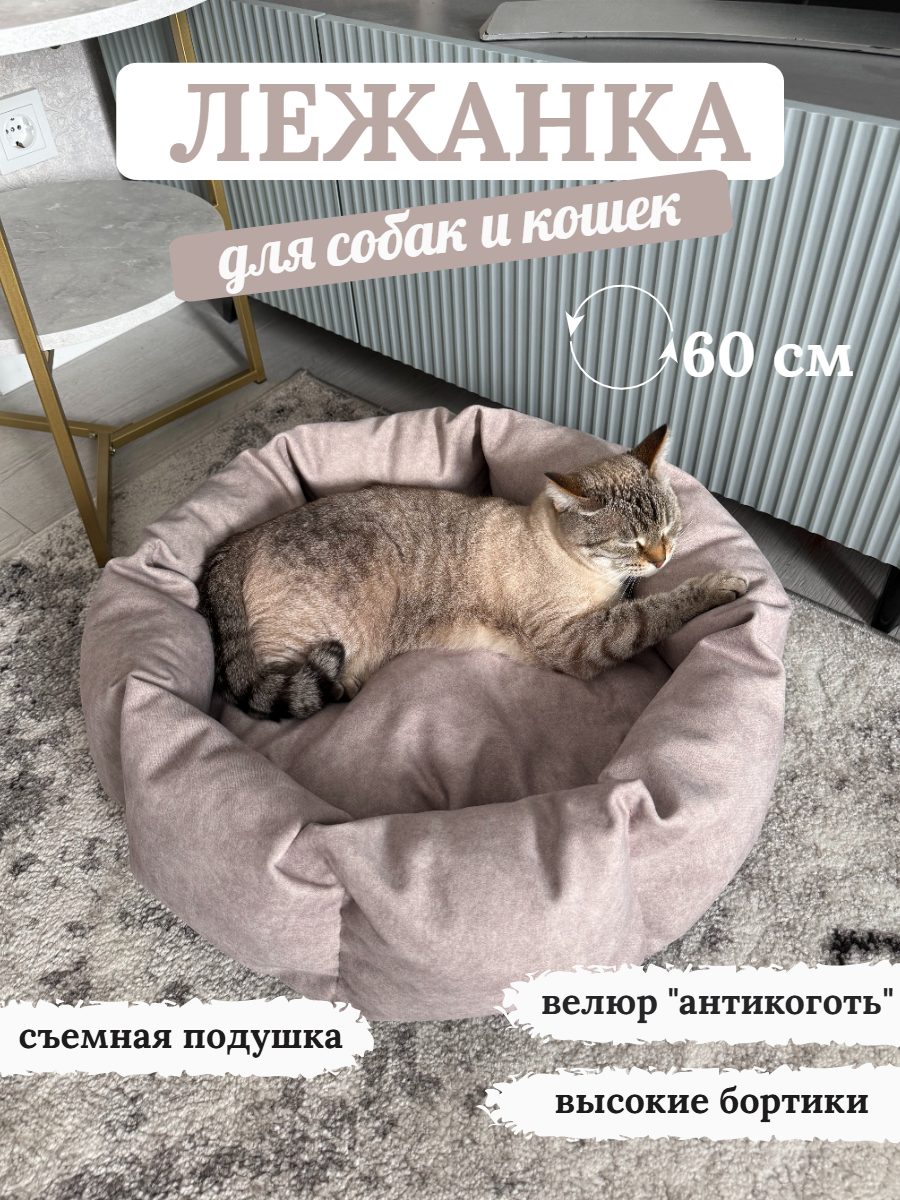 10 цен на Лежанка "Быстросохнущая", для собак и кошек, 60x60x20 см, бежевая, круглая