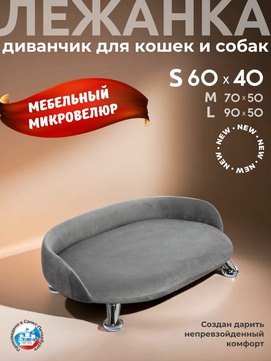 Лежанка для кошек и собак "Луи" диван из Premium мебельной ткани микровелюр для мелких пород 60*40 см. информация: