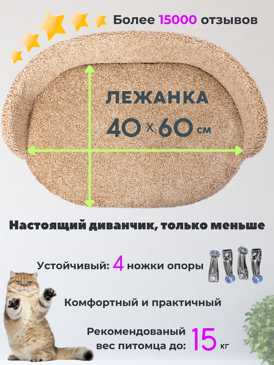 Лежанка для кошек и собак мелких и средних пород Chauzi "Лео" из петлевого ковролина на ножках с бортиком 60*40 см, кэмел информация: