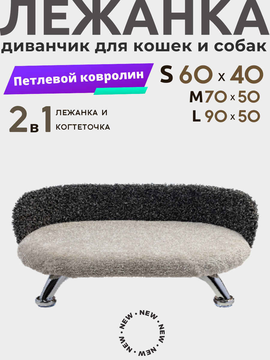 Лежанка диван для кошек и собак мелких и средних пород, диван "Белый" ковролин анти коготь на металлических ножках с бортиком 60*40 см 4 500 ₽