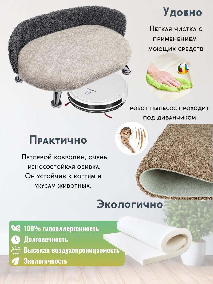 Лежанка, когтеточка, диван для кошек и собак мелких и средних пород, Chauzi Лея-графит на металлических ножках с бортиком 60*40 см, Темно-Серый 4 500 ₽