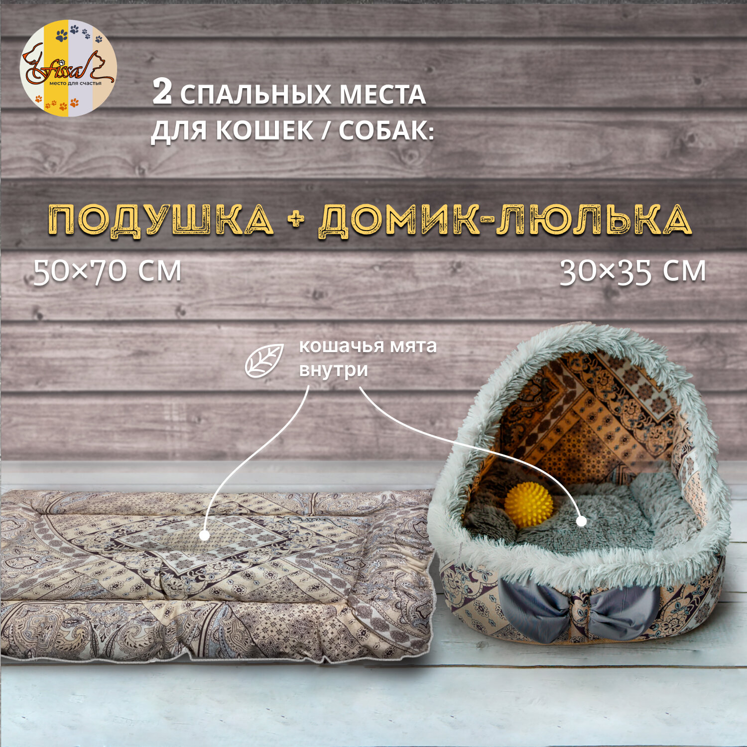 FISSA подушка 70х50 см + домик-люлька 35х30 см - коллекция "Италия" (лежанки для кошек и/или маленьких собачек) информация: