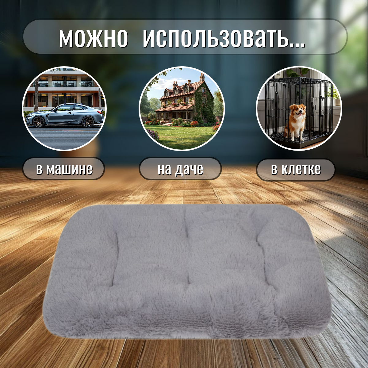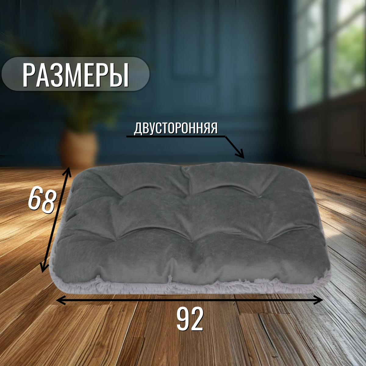 Лежанка-матрас для больших собак и кошек пушистая, двухсторонняя информация: